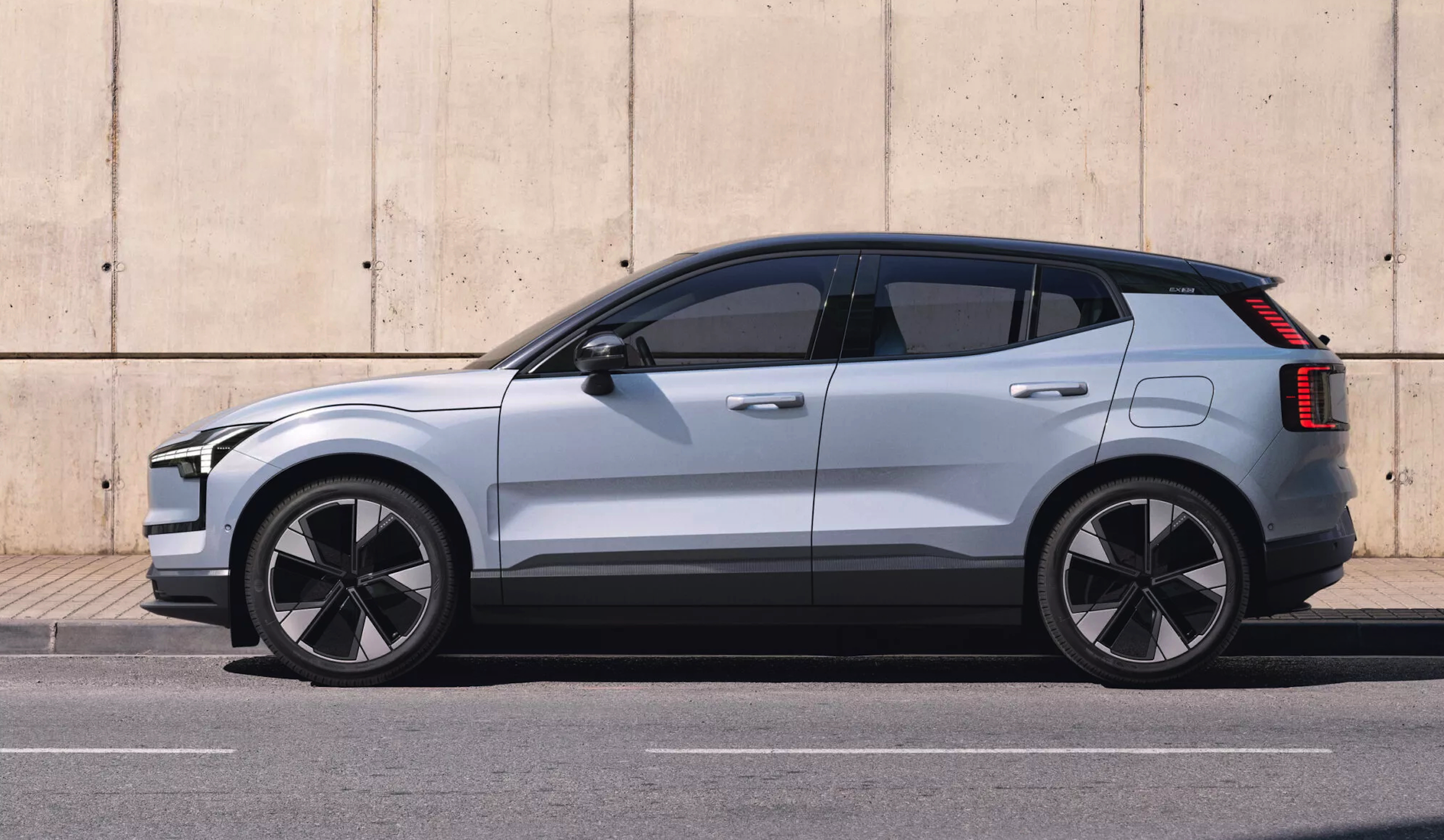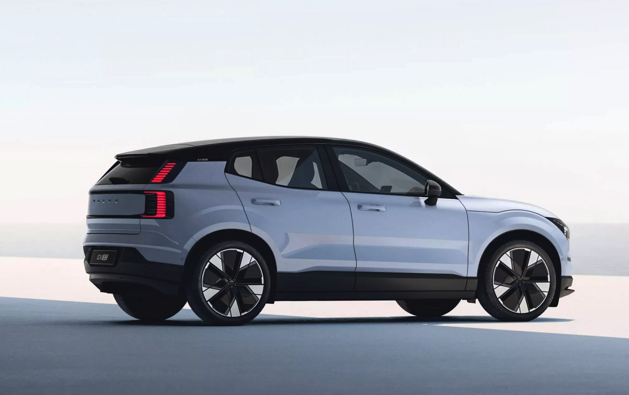 稍有不同的是,沃尔沃EX30在大灯下方设计了一个半框式的造型,以压低车头的视觉观感,另外尾部内部也跟前大灯一样采用了切割式的设计手法,由此强化整车的年轻个性印象。