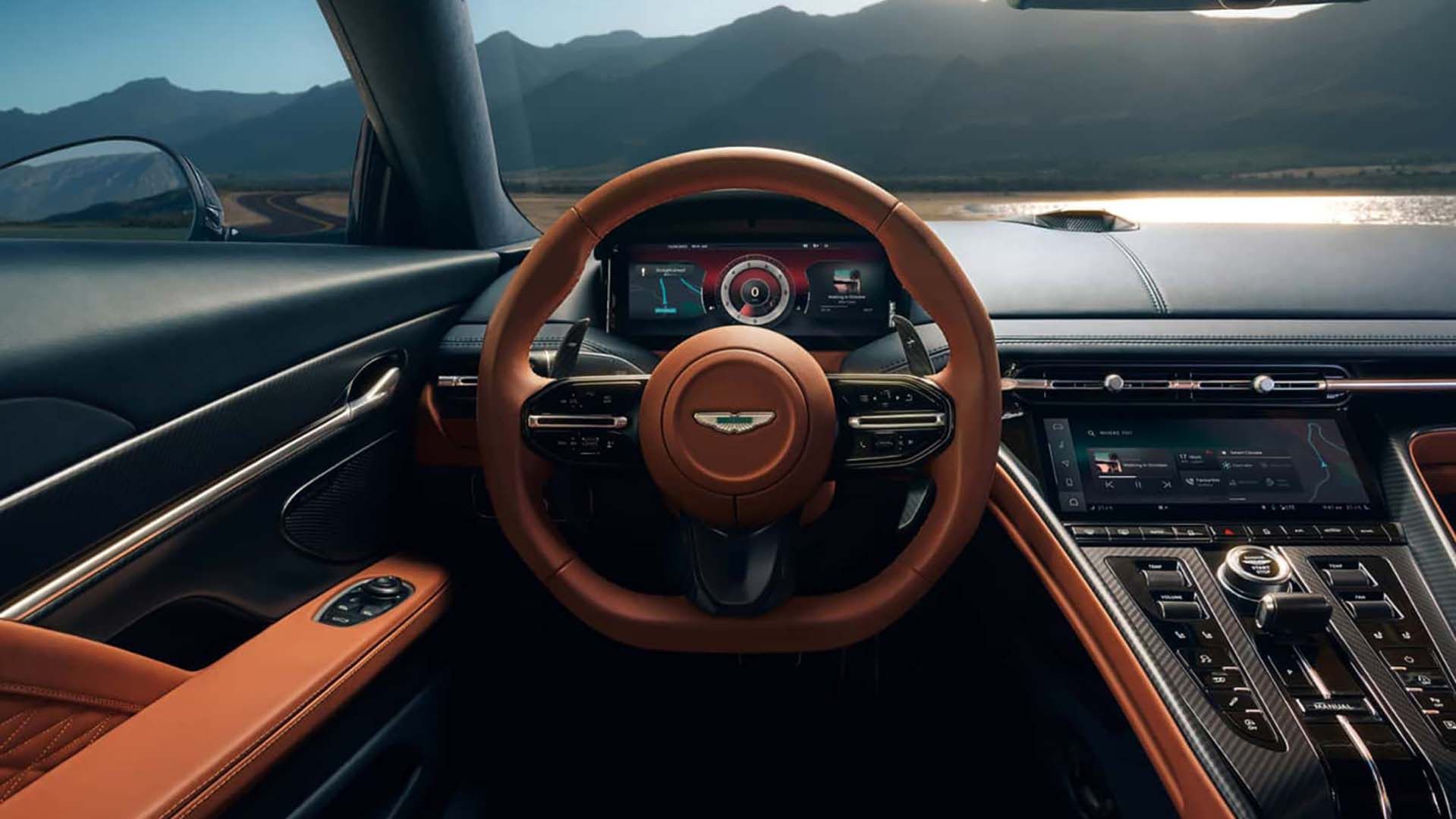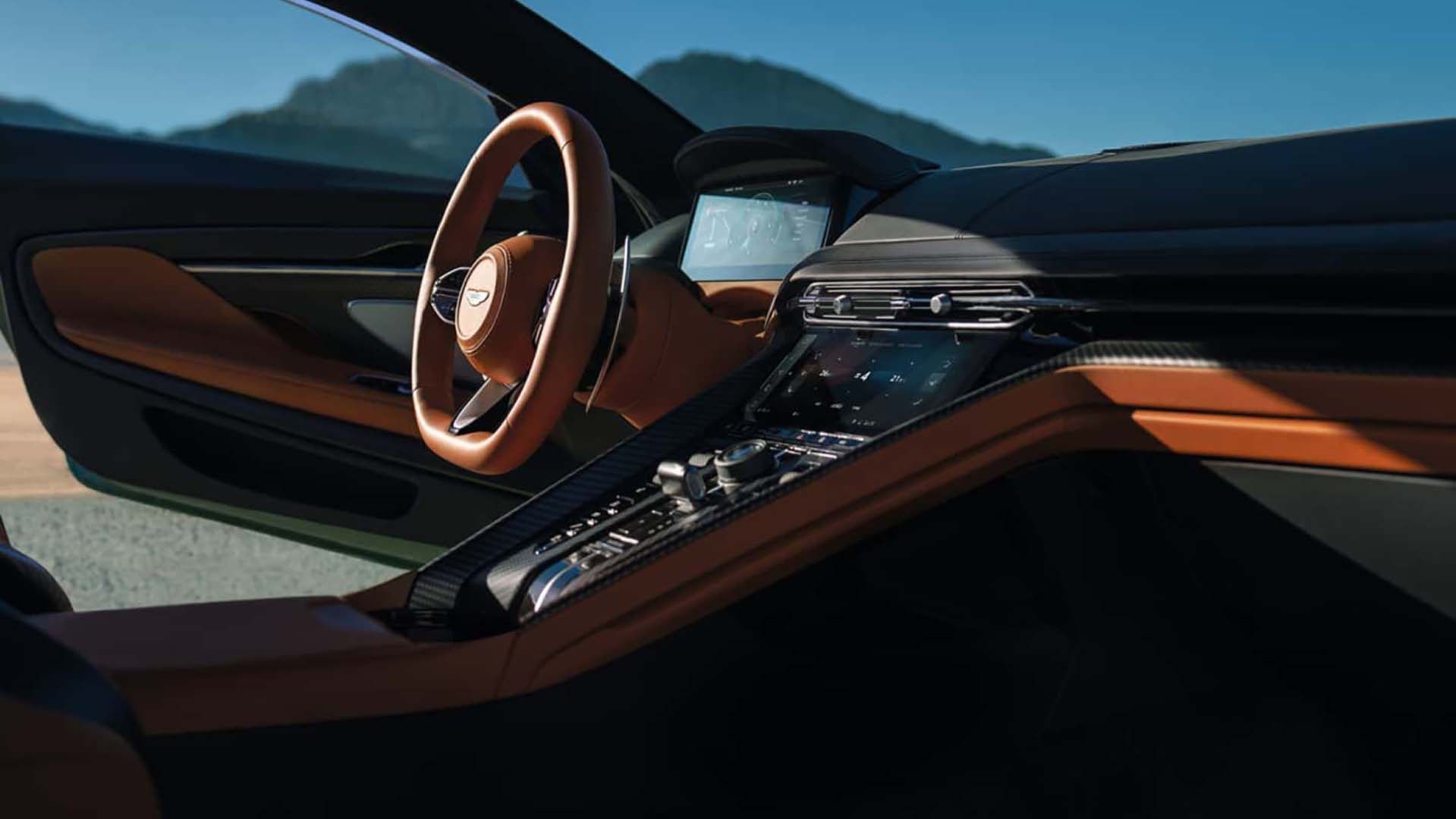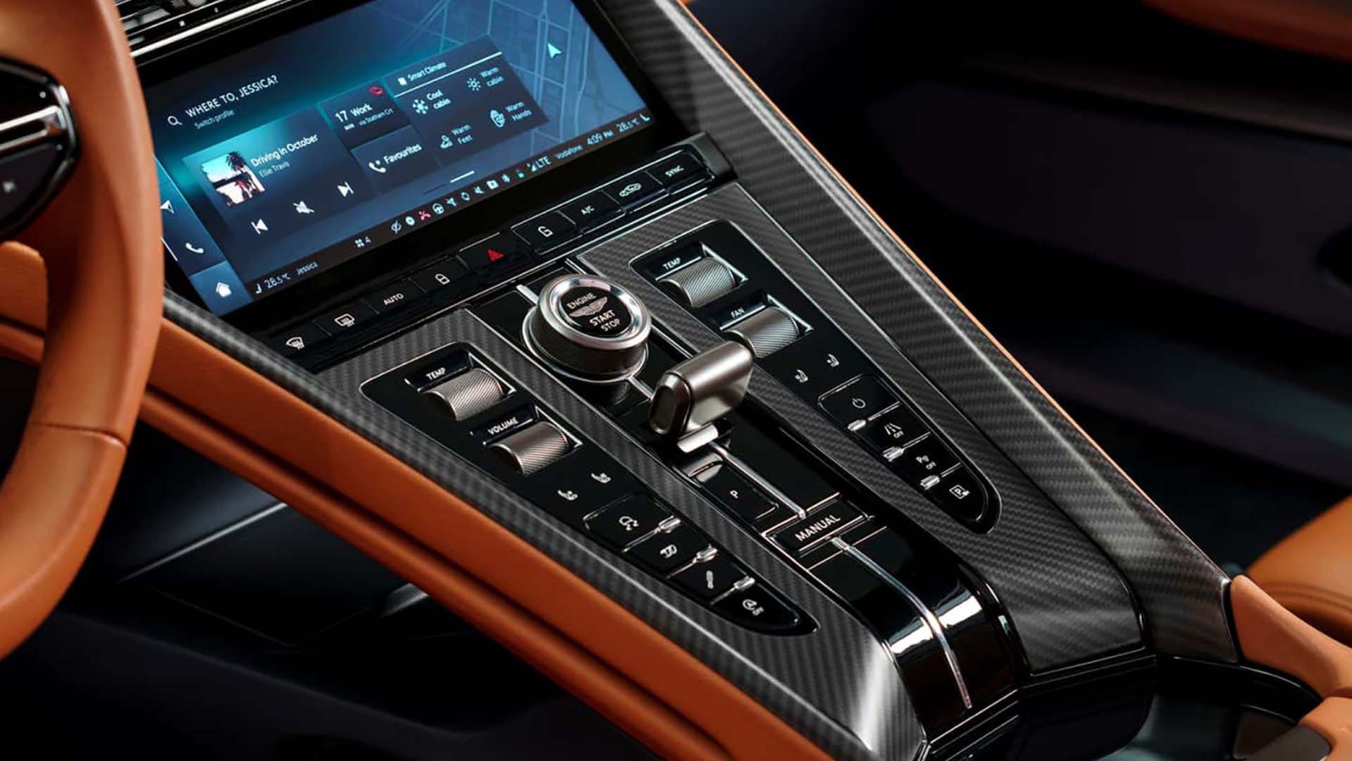 搭载次时代娱乐系统,该系统是由阿斯顿马丁独家设计和开发的。该系统支持Apple CarPlay和Android Auto,配备10.25英寸高分辨率(1970×720)的高清屏幕,并且新车是支持OTA升级的,还可以通过APP应用程序控制车辆。