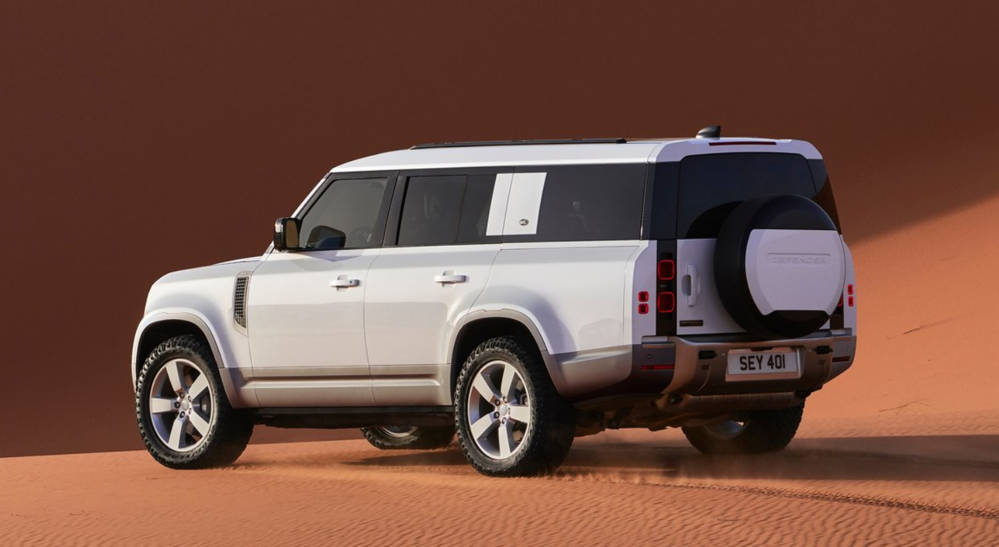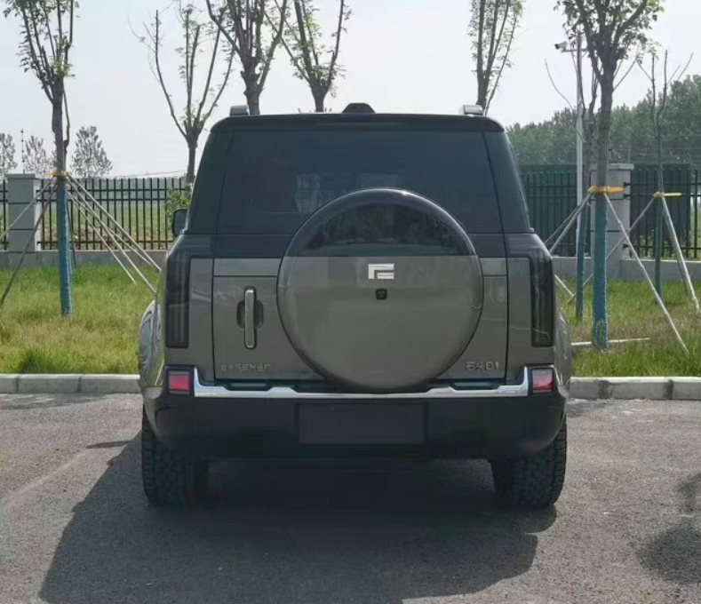 尾部方面,该车采用硬派越野管惯用的竖状型尾灯组,并配备外挂式备胎以及侧开式尾门,可以说硬派SUV越野上有的属性它都有了。