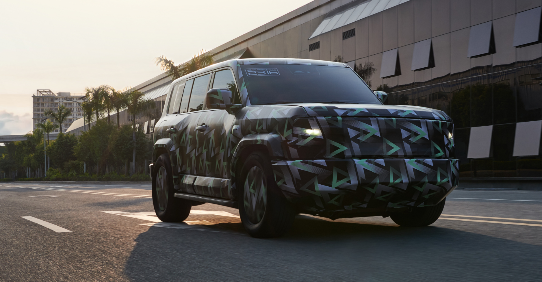 而且饱满方正的车头直接延续到车尾,并且采用黑化车顶的造型,车身则采用墨绿的配色,而且新车车顶还配备 “瞭望塔”式的摄像头,预计新车将有更高级的辅助功能。看到这里,相信大家都能猜到新车是借鉴了哪款车身的设计。