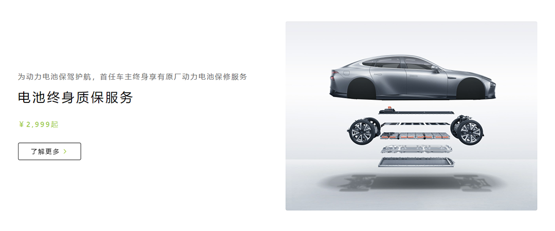 对于新能源汽车,用户的最大长期担忧来自于以动力电池组为核心的三电系统耐用性。为了消除用户的顾虑,大部分厂商都会推出以“终身质保”为代表的保障措施。