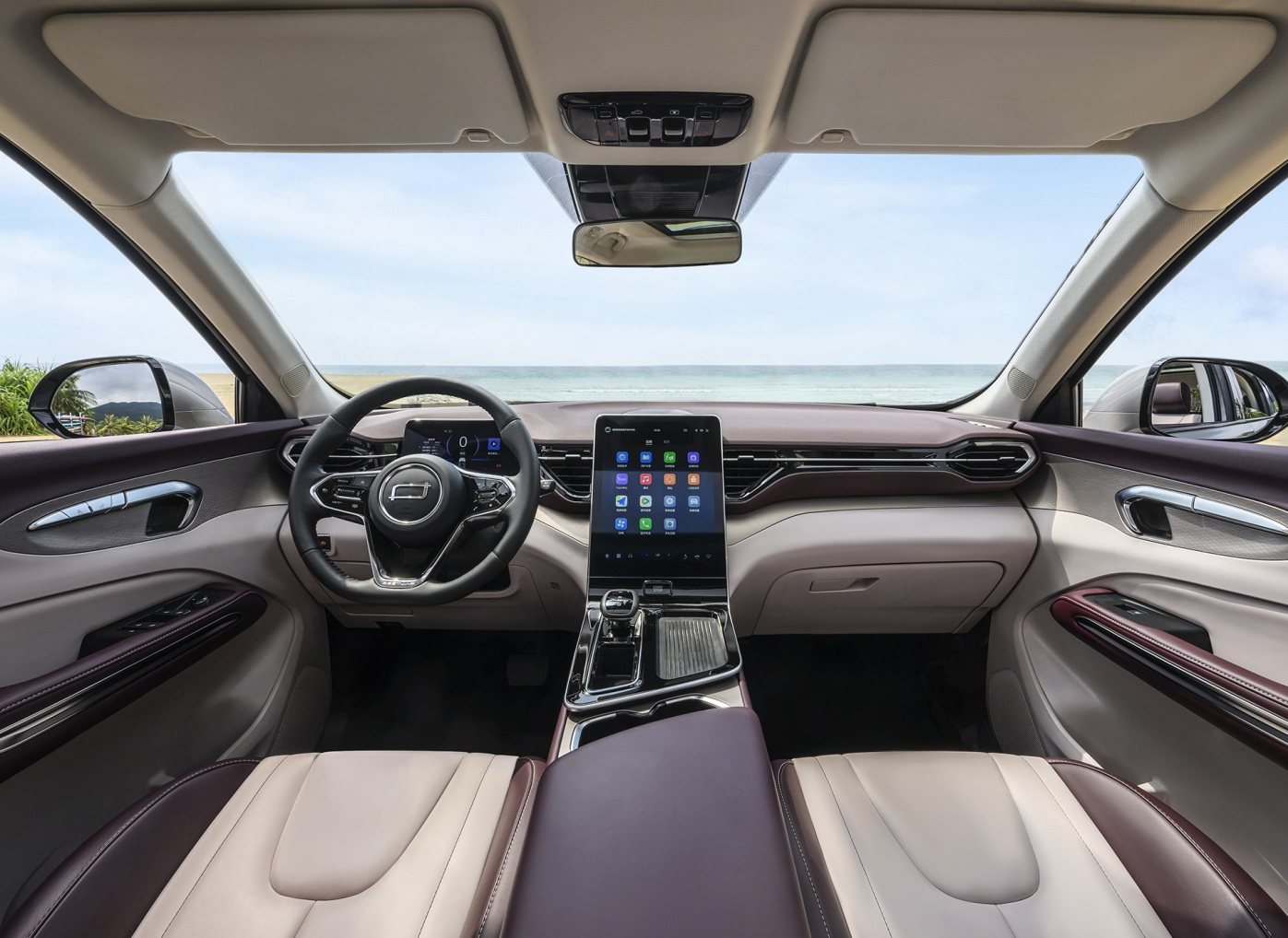 内饰方面,奔腾T90采用对称式的中控台布局,配备8英寸仪表盘、纵向布局的12.6英寸中控屏、三幅式多功能方向盘、精致小巧的电子挡把及贯穿式空调出风口,呈现出非常简约的风格,具有不俗的科技感。
