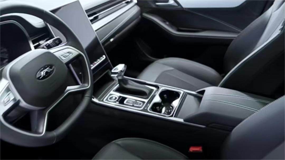 座舱部分,江淮A5 PLUS车内中控台整体采用了大量横平竖直的设计元素。具体来看,中控台由一条贯穿式装饰条联通中控台上所有的空调出风口,纵向则由10.4英寸悬浮大屏进行中央分割,整个中控台设计十分规整协调。
