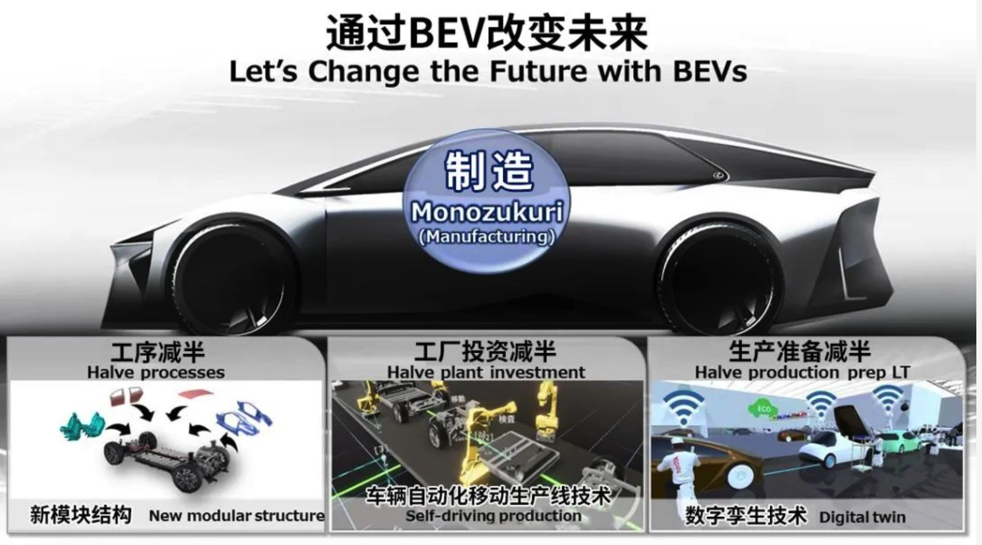 而就在日前的技术说明会上,BEV Factory总裁加藤武郎直言,要用BEV改变未来,完成对汽车、制造、工作方式的变革,由此为丰田带来更好的发展。