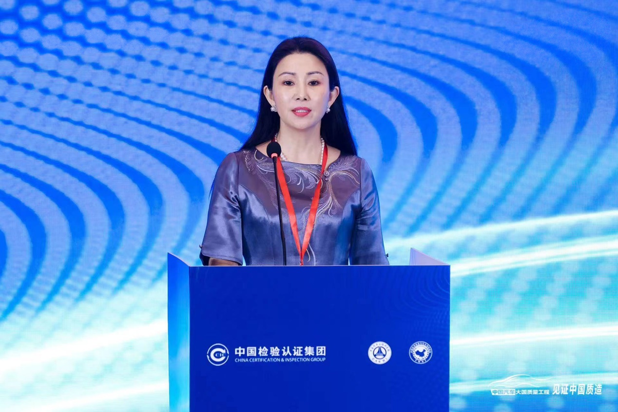 中国检验认证集团党委委员、副总经理王虹发表致辞,她提到中国汽车产业正迈向高质量发展的新阶段,质量仍是汽车企业的立身之本,新阶段如何将质量强国的宏伟蓝图转化为“施工图”、“实景图”,是汽车全产业链的共同课题。本次活动为推动中国汽车产业向电动化、国际化发展创造了新的平台,希望各界同仁加强沟通交流,共促合作。
