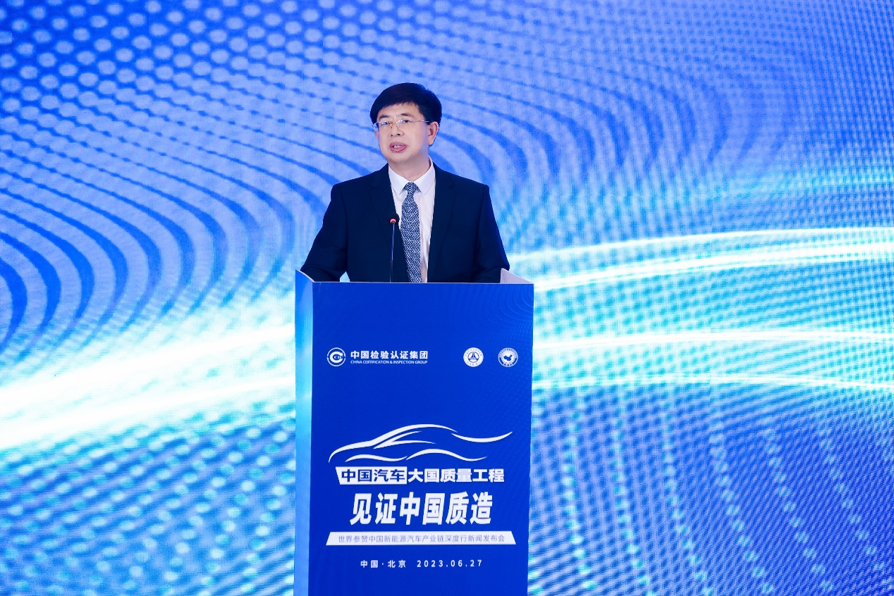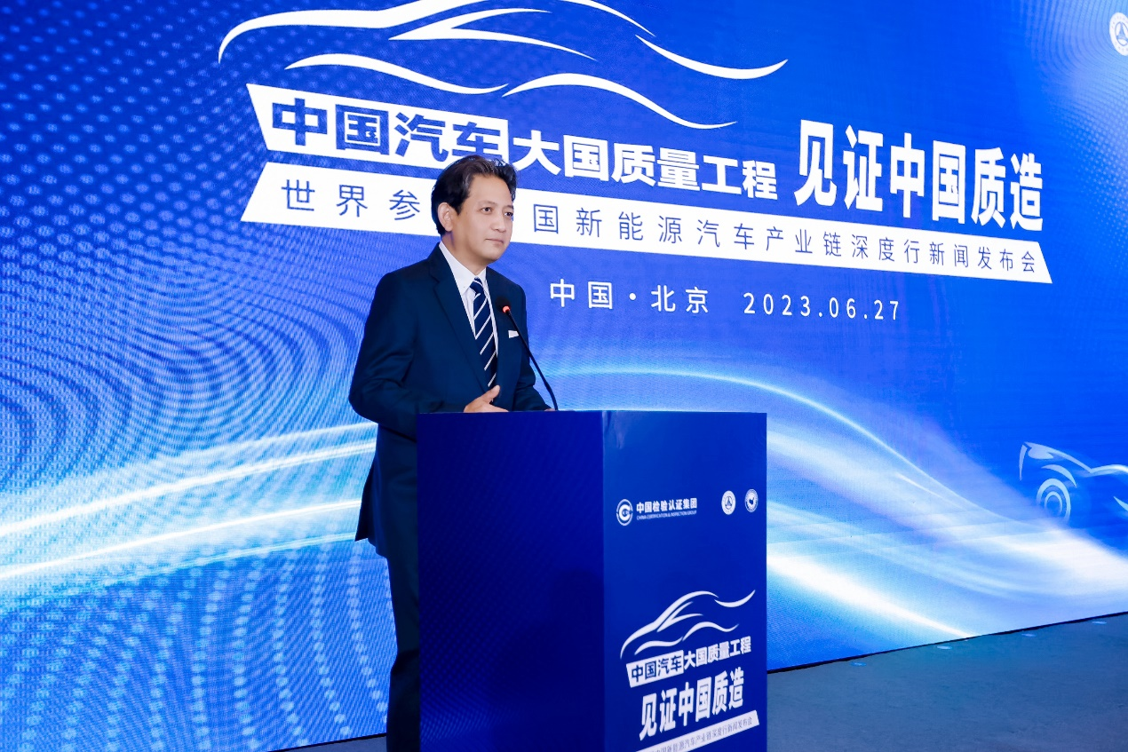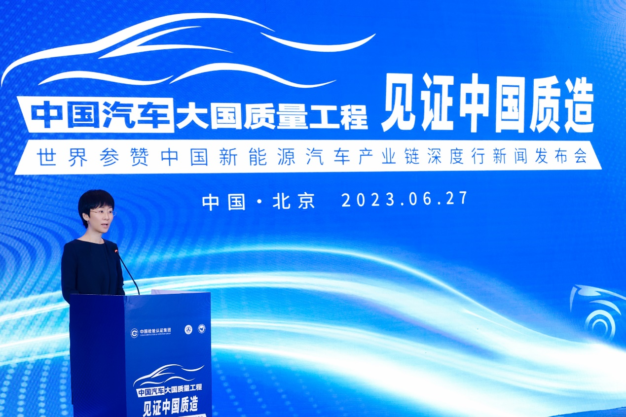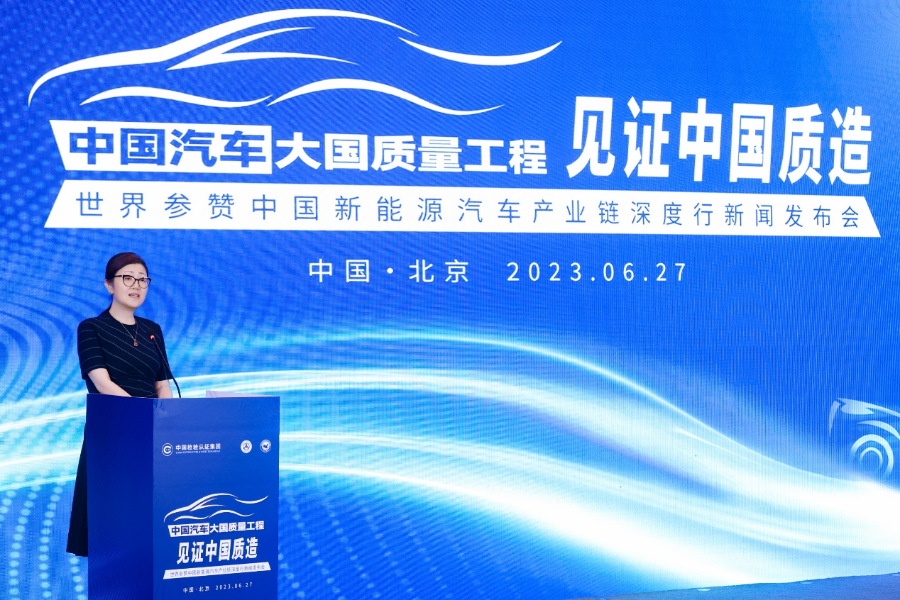 6月27日,在中国检验认证集团的指导下,由中国汽车工程研究院股份有限公司(以下简称:中国汽研)和中国世界民族文化交流促进会(以下简称:世促会)联合主办,以“中国汽车大国质量工程·见证中国质造”为主题的世界参赞中国新能源汽车产业链深度行新闻发布会在北京圆满召开。