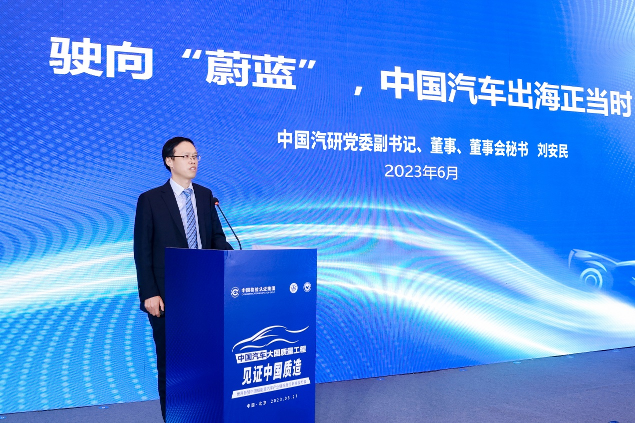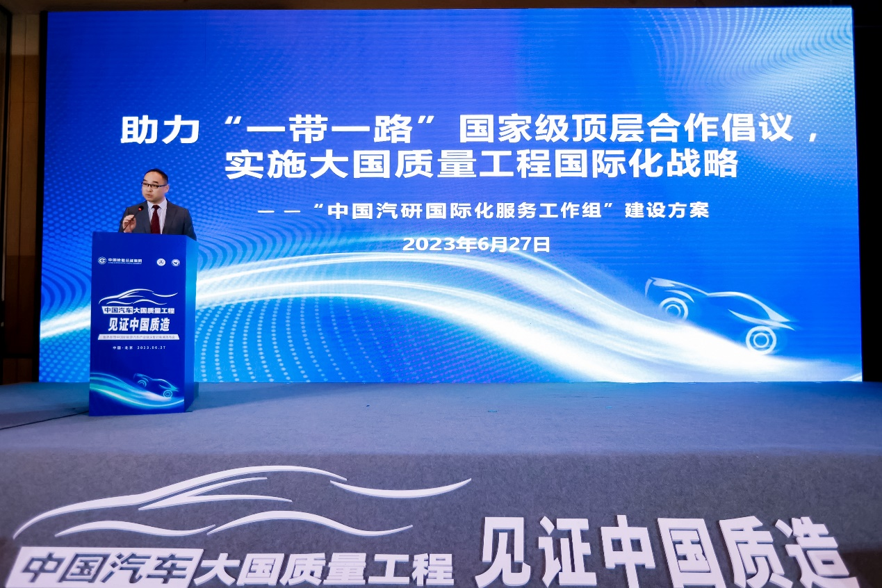 中国检验认证集团充分发挥品牌优势和国际化、多元化的平台优势,助力国内企业扬帆海外,作为唯一一家主业为综合质量服务的央企,将为推动企业走出国门和高质量发展贡献更多的力量。中国汽车大国质量工程将搭建中国汽车出海沟通合作平台,积极推进中国汽车进入国际市场参与竞争,共同推动汽车产业高质量发展。