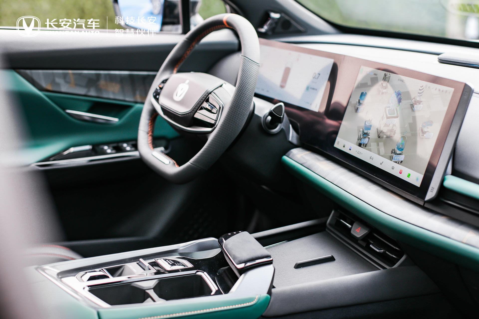 在内饰方面,第二代UNI-T则是采用全新环绕一体式设计,12.3+12.8寸“互动港湾”一体弯联屏悬浮于仪表台上,充分展现出科技美学;一体式运动座椅,提供良好了的包裹性和舒适的支撑感,搭配D型方向盘,营造出极强运动感氛围,而独创的悬浮式太空战舰电子档杆,未来科技感十足。