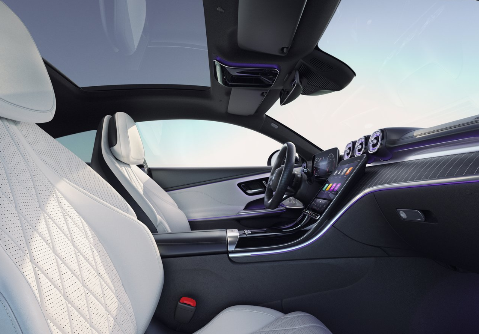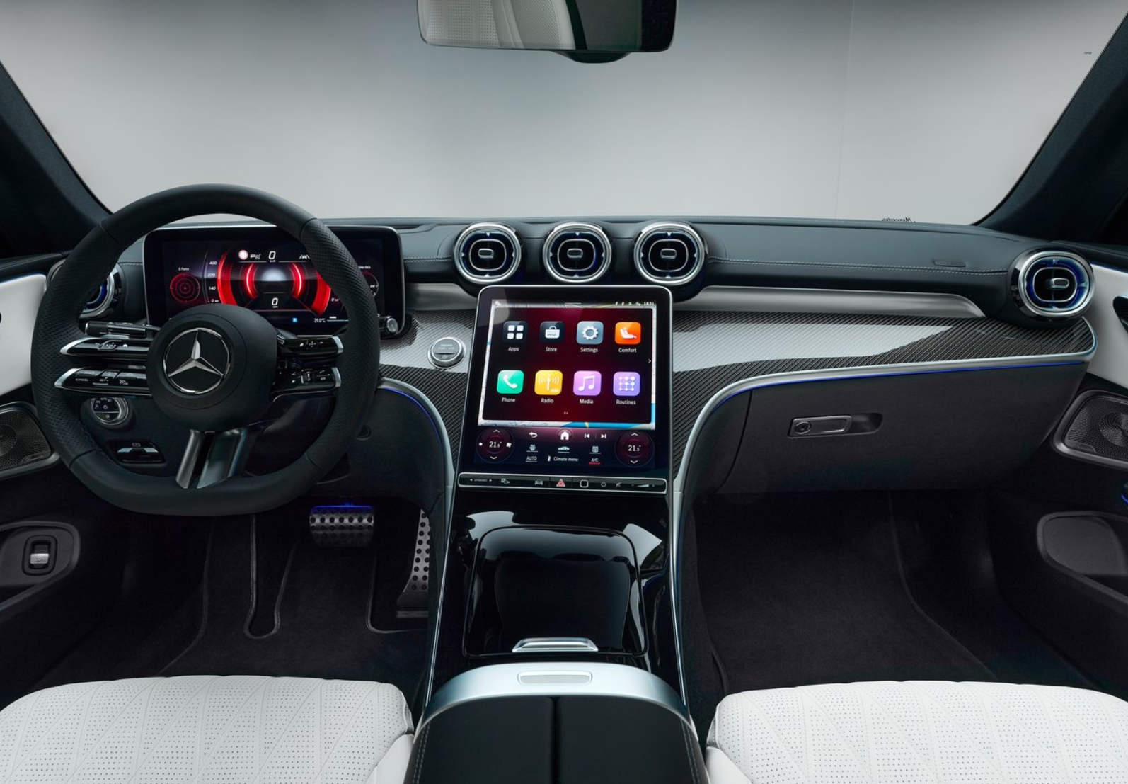 如果从外观你很难分辨它是延续谁的话,那你看完内饰或许就能豁然开朗了,因为全新CLE直接采用与C级一致的内饰造型,全液晶仪表搭配大尺寸的中控屏,并且三圆空调出风口都与奔驰C级如出一辙,甚至坐进车内你都很难分辨它是C级还是CLE。