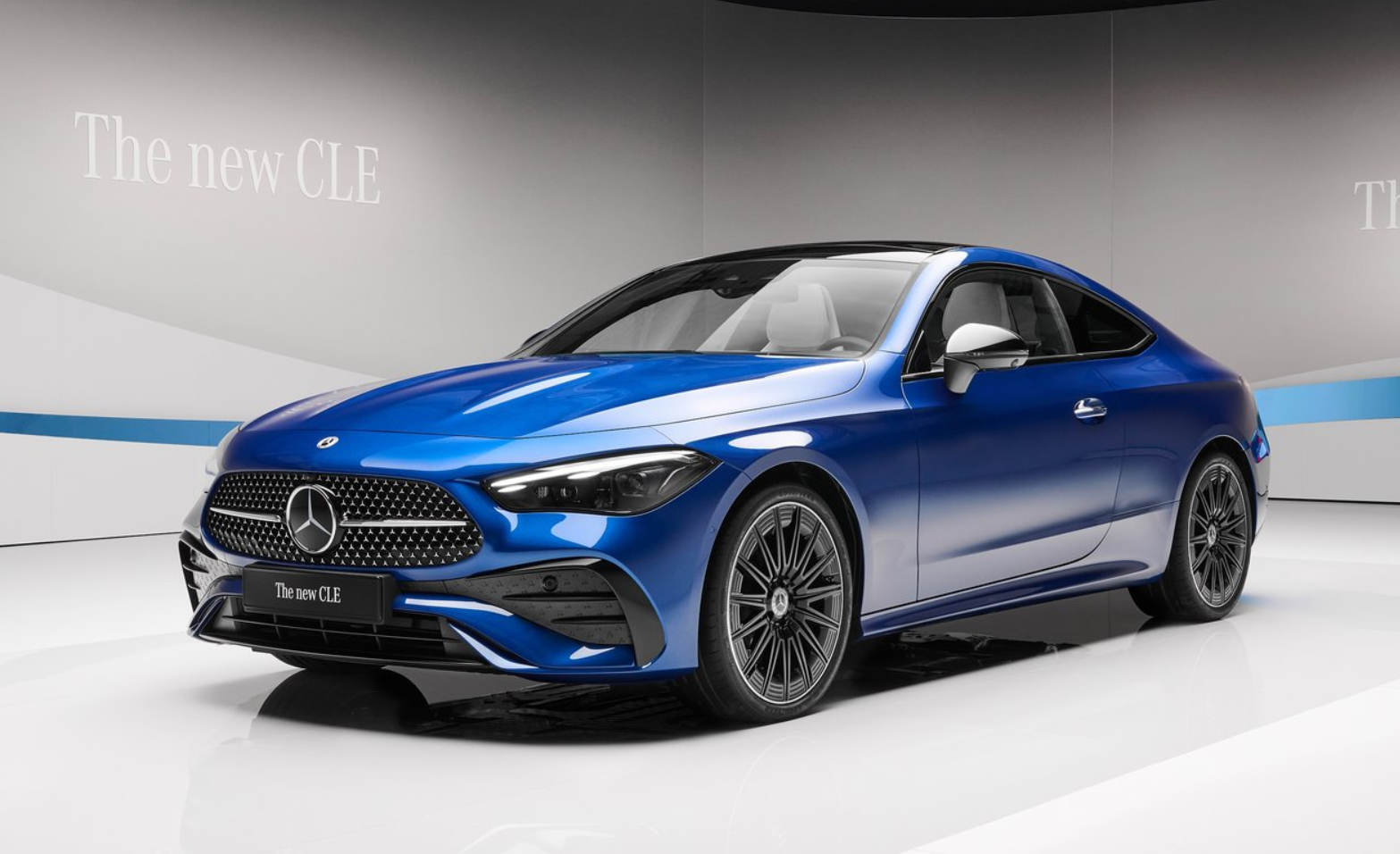 既然是作为顶替C级/E级Coupe的车型,那么全新CLE造型与前者也是相似的,但作为全新产品,新车也采用了奔驰家族最新设计语言,前脸更加贴近全新C级,狭长的头灯组搭配倒梯形的进气中网,内部配备了满天星辉点阵造型,下保险杠则运用上类似AMG的风格。