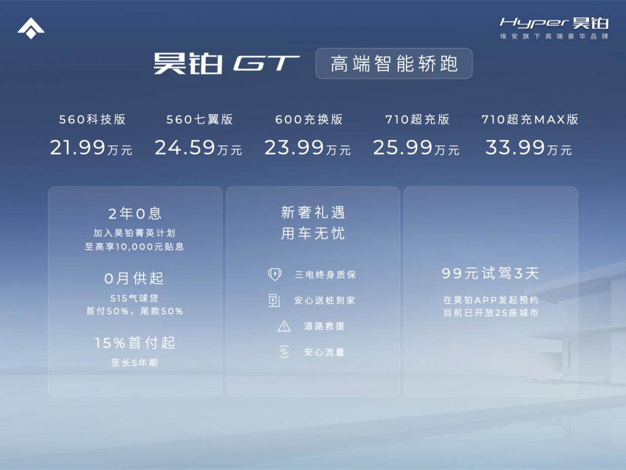 年少有为者的生活,总是在出行之外,享受旅途的惊喜与乐趣。对于昊铂GT而言,出行从不只是一次“距离”之间的碰撞,而是对美、对速度、对生活的无限遐想,这样一款对特斯拉全方位赶超的产品,也正如广汽埃安副总经理肖勇所说:“昊铂GT有信心在销量上做到细分市场前三,Hyper昊铂将成为中国高端新能源车市场的头部品牌”。未来昊铂GT将携手年少有为者,展翼向前,迎来与特斯拉的双王对局。据了解,昊铂GT将官方零售价锁定在21.99-33.99万元这一诱人的购车空间,并推出99元深度试驾3天活动。即刻行动,科幻艺术品外观、高端智能座舱、汹涌澎湃动力唾手可得。