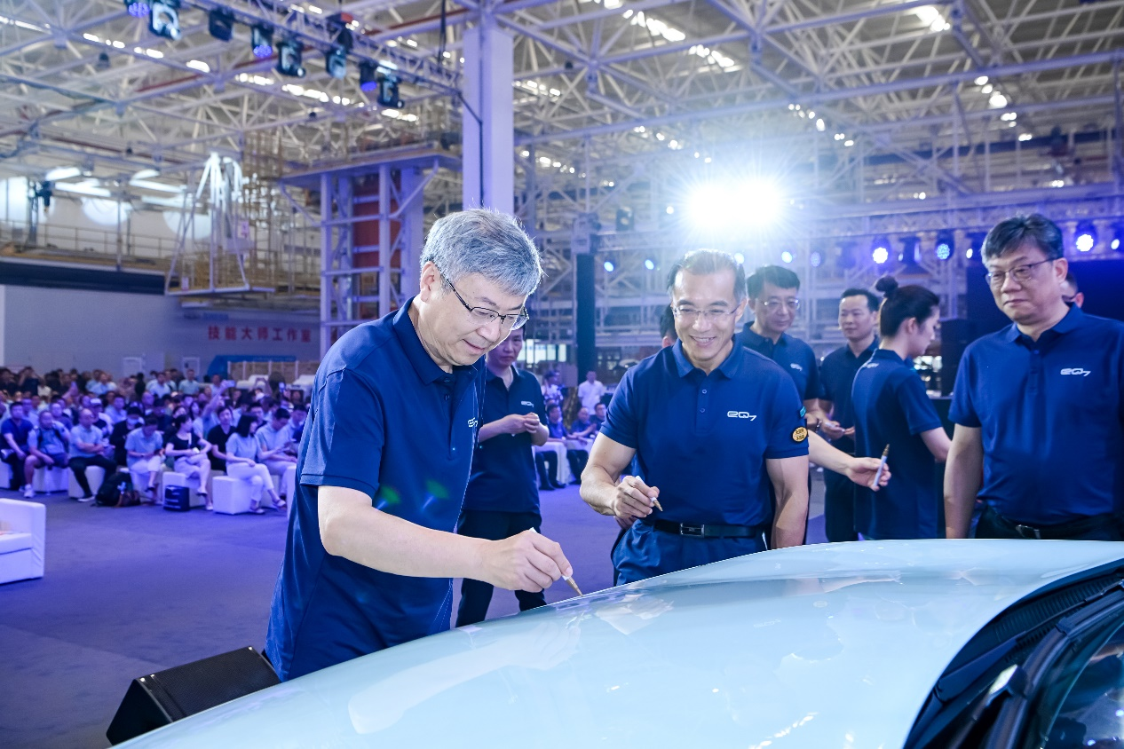 7月12日,“中国首个铝基轻量化平台发布暨奇瑞eQ7首台量产车下线仪式”在芜湖奇瑞新能源二期工厂举行。