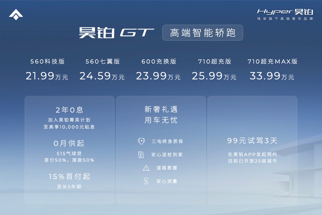 刚刚上市的昊铂GT,补贴后的售价区间为21.99万元-33.99万元,现在正在全国开展先锋体验官招募活动,只需99元即可开启3天的产品深度体验,与昊铂GT来一场“热恋”。作为广州新能源车智造的新名片,昊铂GT用一场惊艳的千翼大巡游,不但让更多广州市民了解了这款高品位的高端智能轿跑,同时也让绿色环保的纯电出行理念更加深入人心。凭借让人惊艳的高颜值和硬核的产品实力,昊铂GT也由此引发了广州全城对于中国高端纯电车的价值大讨论,订单量即将迎来进一步的增长。
