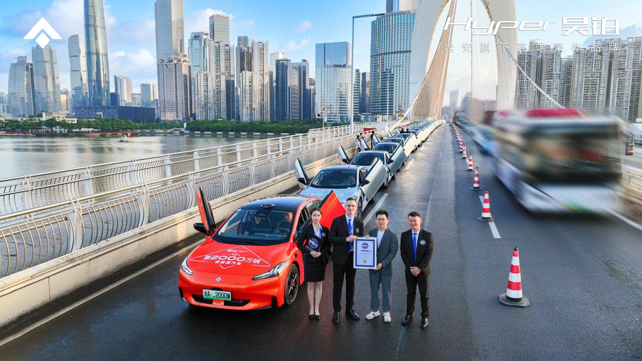 此次城市巡游,由近百台昊铂GT组成的旋翼门车队,从位于珠江新城的广汽中心起点出发,穿越广州中轴线最繁华地段及交通要道。当所有车辆整齐划一地展开“七翼”的那一刻,场面蔚为壮观。至此,昊铂GT也成功完成最大规模旋翼门车队巡游的世界纪录挑战。在众多年少有为广州市民以及全国媒体的现场参与见证下,Hyper昊铂官方接受了全球公认的权威纪录认证机构WRCA颁发的世界纪录证书。通过此次活动的成功举行,昊铂GT向2000万辆的中国新能源车新里程碑表达了最好的致敬。