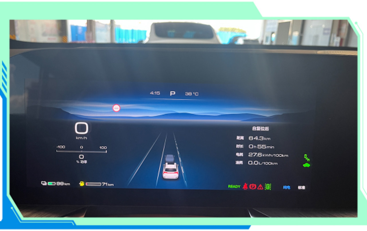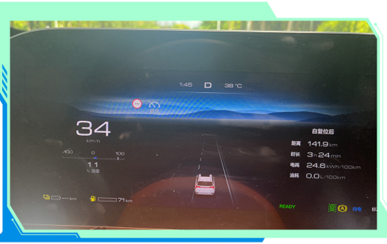 最后,蓝山DHT-PHEV在行驶141.9km后续航便不再显示,油量见底的发动机在检测到电量严重不足后也不得不参与驱动,本次的电耗测试也到此结束。在得出续航里程数据后,我们便将蓝山DHT-PHEV开往充电桩进行补能,一方面要得出最准确的电耗数据,另一方面则是充电时间了。