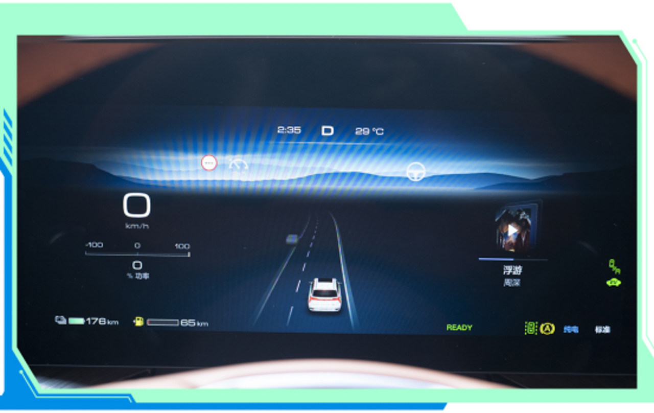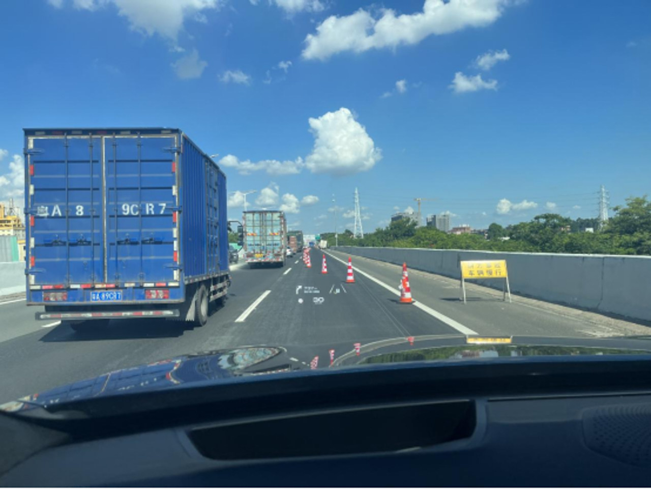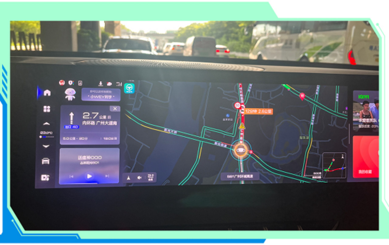 进入广州环城高速,拥堵如约而至,走走停停的路况下对于电耗来说可不是什么利好消息。好在蓝山DHT-PHEV在智能化方面十分强悍,配备高精地图,进入快速路后便会提示NOH可用,只需在左侧的方向盘上连续按动两下便可进入领航辅助驾驶模式。除了常见的功能以外,蓝山DHT-PHEV还支持自动变道、进出匝道、循迹倒车等,在科技的加持下驾驶员显然舒服很多。