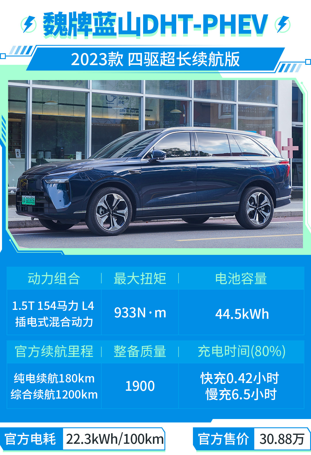 带着问题教授找来了一台蓝山DHT-PHEV四驱超长续航版,作为魏牌向电动化、智能化转型的旗舰车型,蓝山DHT-PHEV延续了“魏牌咖啡智能系列”,蓝山咖啡是世界上最贵的咖啡之一,从名字不难看出魏牌将其定位为高端豪华新能源车型,也是目前市面上插电式混合动力的代表车型之一。
