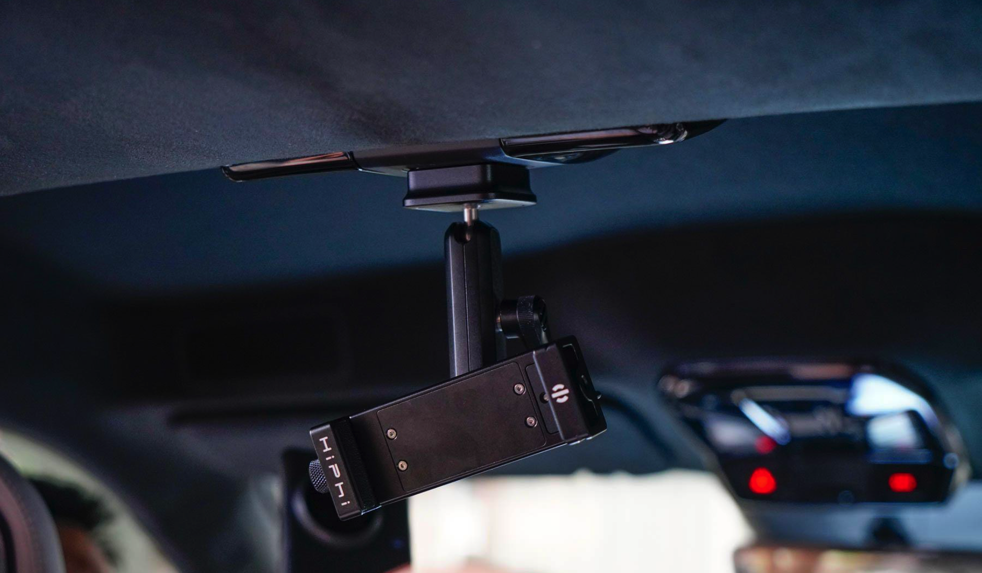 事实上对于行业高度同质化的大屏方案,高合不是没有准备plan b来作出应对,HiPhi Y就选择在车内顶部装配了一个拓展坞接口,用户可以选择挂载平板电脑、投影仪、Gopro等设备,这点也可以说是用户共创的一种设计理念体现。