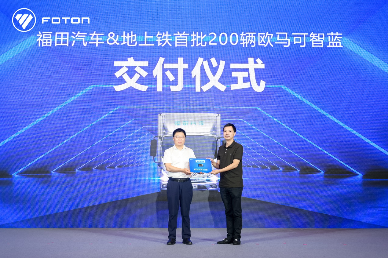 此次福田汽车南方市场工作会上,还举行了“福田汽车&地上铁首批200辆欧马可智蓝产品交付仪式”,这是继5月双方签署战略协议后的首批交付。随着福田汽车总经理武锡斌将代表车辆的钥匙交予地上铁副总裁袁果,福田汽车与深圳地上铁的合作进一步深化。双方在优势区域强强联合,合力打造爆款产品,满足B端、C端用户实际服务需求,迅速开拓空白市场,拉升市场占有率。