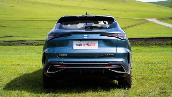 尾部的设计并未采用时下主流的贯穿式设计,在同质化严重的当下,欧尚X5 PLUS的尾部原创度绝对可以给个好评。尾部上方的镂空尾翼造型很是犀利,修长的尾灯加上下方设计感十足的后包围,视觉效果出众。两侧的导流孔设计很是个性,能够在视觉上拉宽车身,下方的排气设计同样犀利,而且采用银色的装饰,让整个尾部更显动感。