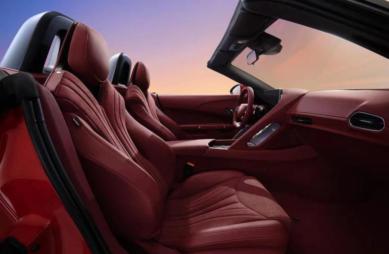 进入内饰,名爵Cyberster采用一个非常高级与科技感的造型,上方由大尺寸曲面双联屏搭配倾斜的嵌入式中控屏,营造出了环抱式的三联屏感觉,中控右侧还加入扶手设计搭配电子换挡机构,一定程度凸显了新车科技感。