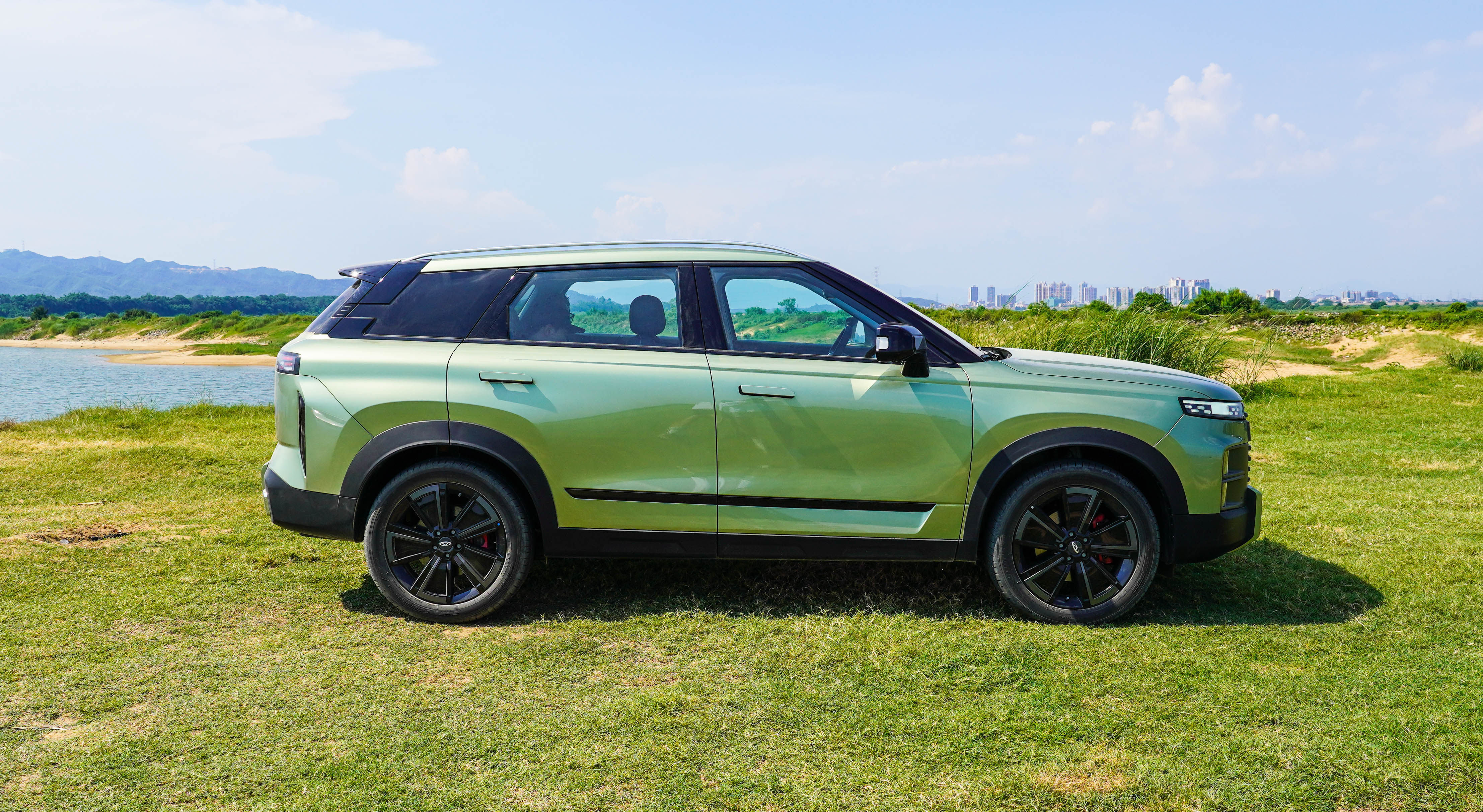 车身侧面,探索06继续延续前脸旷野极简的线条,以隐藏式门把手、加上悬浮式车顶以及平直的设计元素,让其与前脸有着较大反差,甚至一点不像一款硬派越野车型。