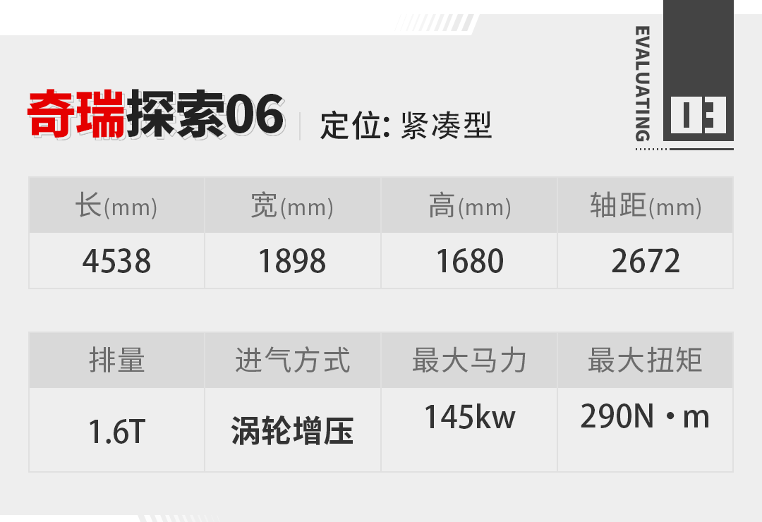 随着消费市场越来越多元化,仅仅满足个别需求似乎已经很难让大部分车型赢取市场竞争力,所以探索06的到来,更像是奇瑞面向年轻消费者打造的一款,既能家用又能越野的战略车型。也正是目前市面上仍然较少集结“既要、又要”的产品理念车型,让哈弗大狗成为当前主流产品,所以未来随新车上市后,探索06最直接的对手也将是哈弗大狗。