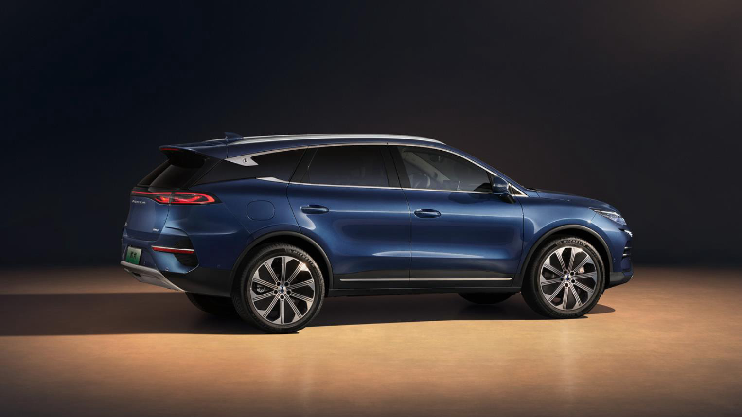 和腾势N7轿跑俯冲的侧面运动姿态不同,腾势N8的侧面设计更加圆润饱满。同时,加长的车身也侧面看和更加舒展,并不会带来太多的攻击性。