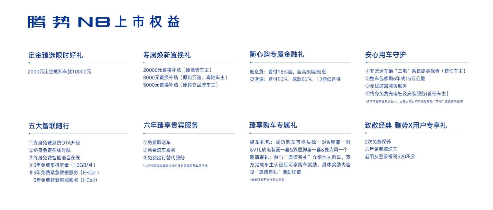 另外,在腾势N8上市之际,腾势还为8月31日之前购车的用户提供了多重购车权益。