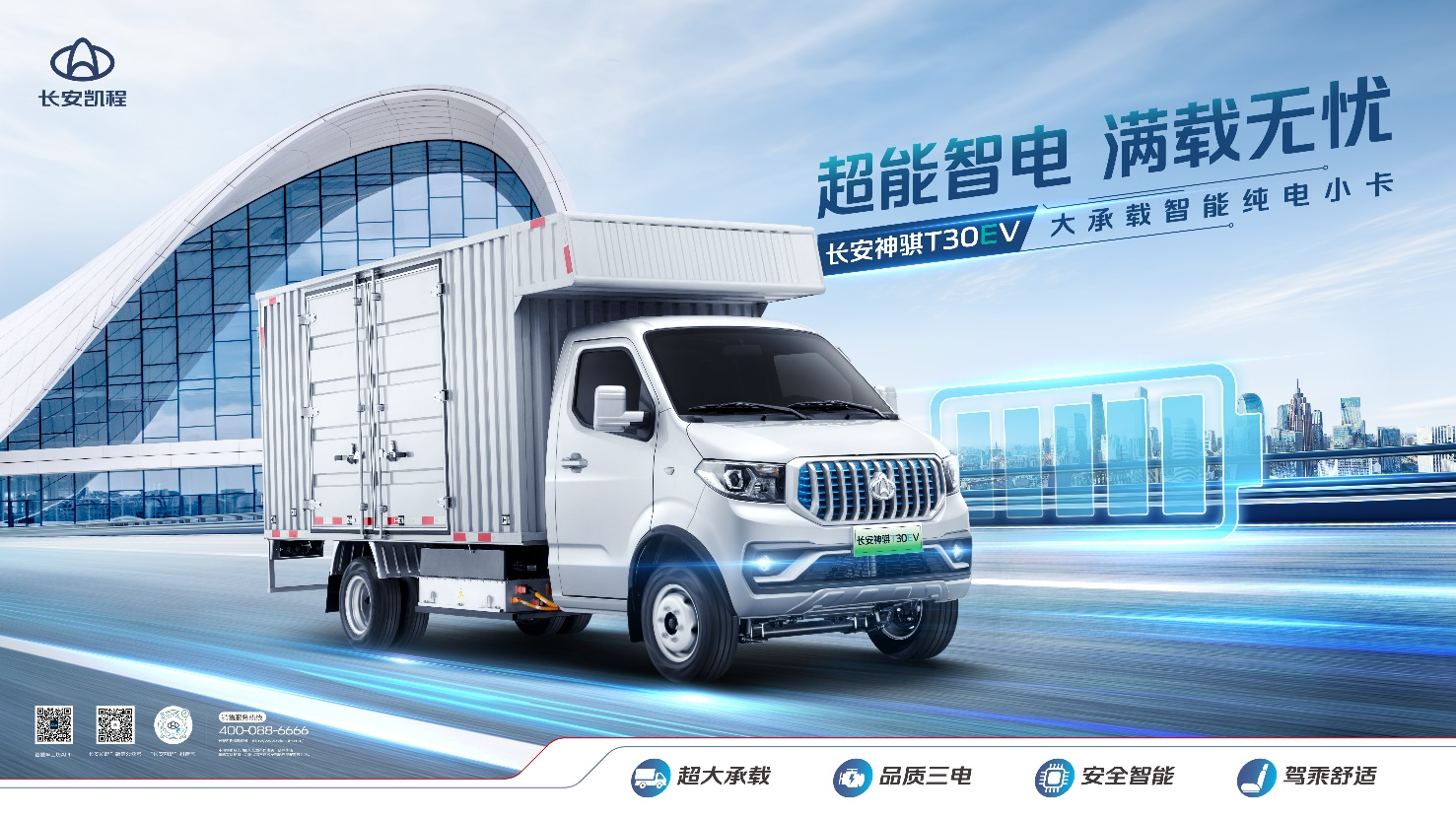 超能智电,满载无忧。8月15日,长安凯程旗下长安神骐T30EV正式上市。新车定位于“大承载智能纯电小卡”,售价18.98万元起。长安神骐T30EV以超大承载、品质三电、安全智能、驾乘舒适的硬核产品力,成为“理性务实的绿色城运一族”创业致富的好帮手,并进一步完善长安凯程旗下新能源产品谱系。