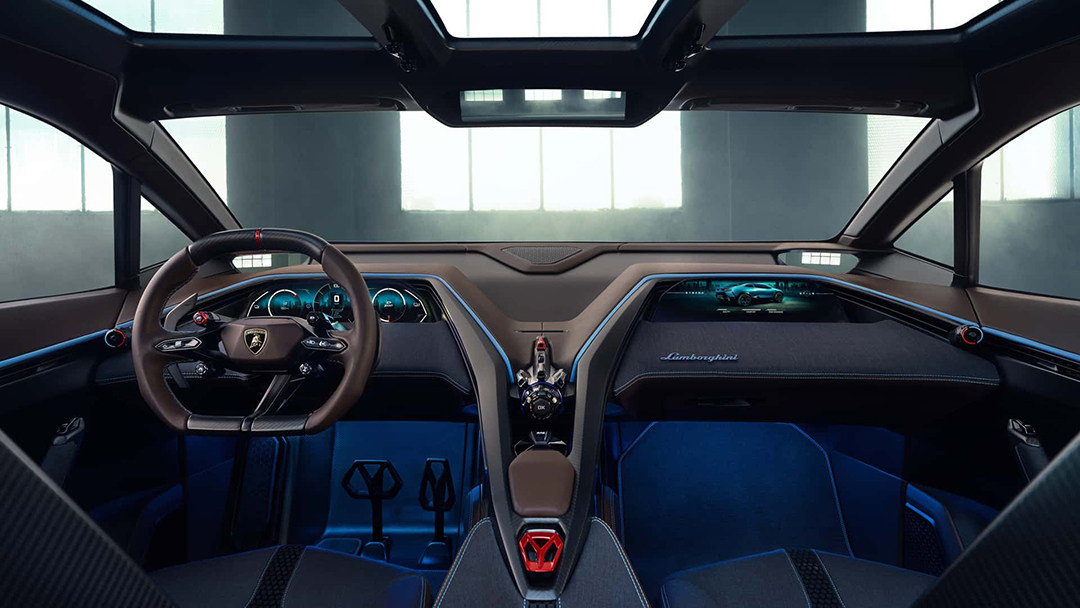 至于车厢内部,目前仍处于概念车状态的Lanzador自然会采用颇为夸张的优先考虑视觉效果的设计,因此我们可以看到非常帅气的三辐式方向盘与非常纤细的Y形框架式中控。