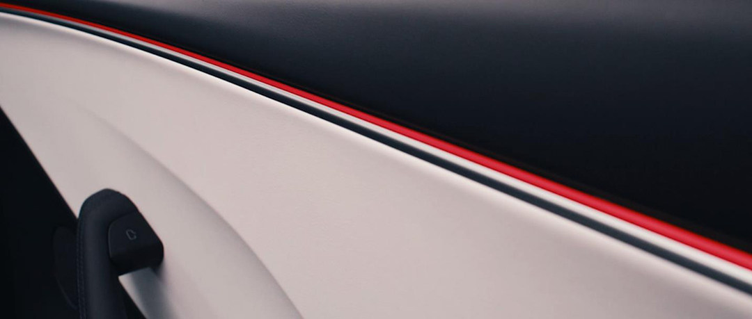 虽说独立仪表盘是回不来了,但特斯拉似乎也有意通过一些跟进潮流的科技感设计优化内饰的观感和质感,因此第一项值得注意的升级就是环抱式氛围灯。