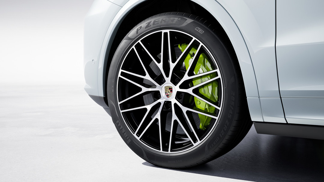 而为了让这动力强劲的大家伙在跑得快的同时还能刹得住,Cayenne Turbo E-Hybrid的制动系统也经过强化,对制动力输出进行了优化调校,前后桥分别采用了级别颇高的对向10活塞与4活塞卡钳。