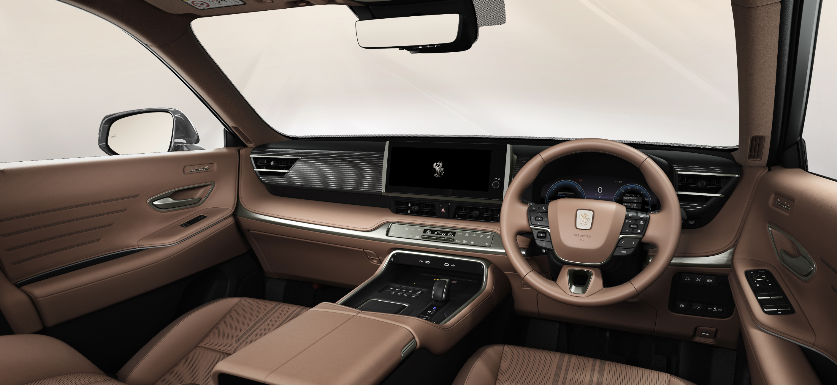 进入内饰,世纪SUV整体造型采用偏复古的设计,基于世纪定位主打高端格调,所以内饰配色采用的是深棕配黑,中控部位依旧大家熟悉的配置,例如悬浮式中控屏、三辐式方向盘以及较小的电子换挡机构,这些在丰田皇冠上都有率先采用。