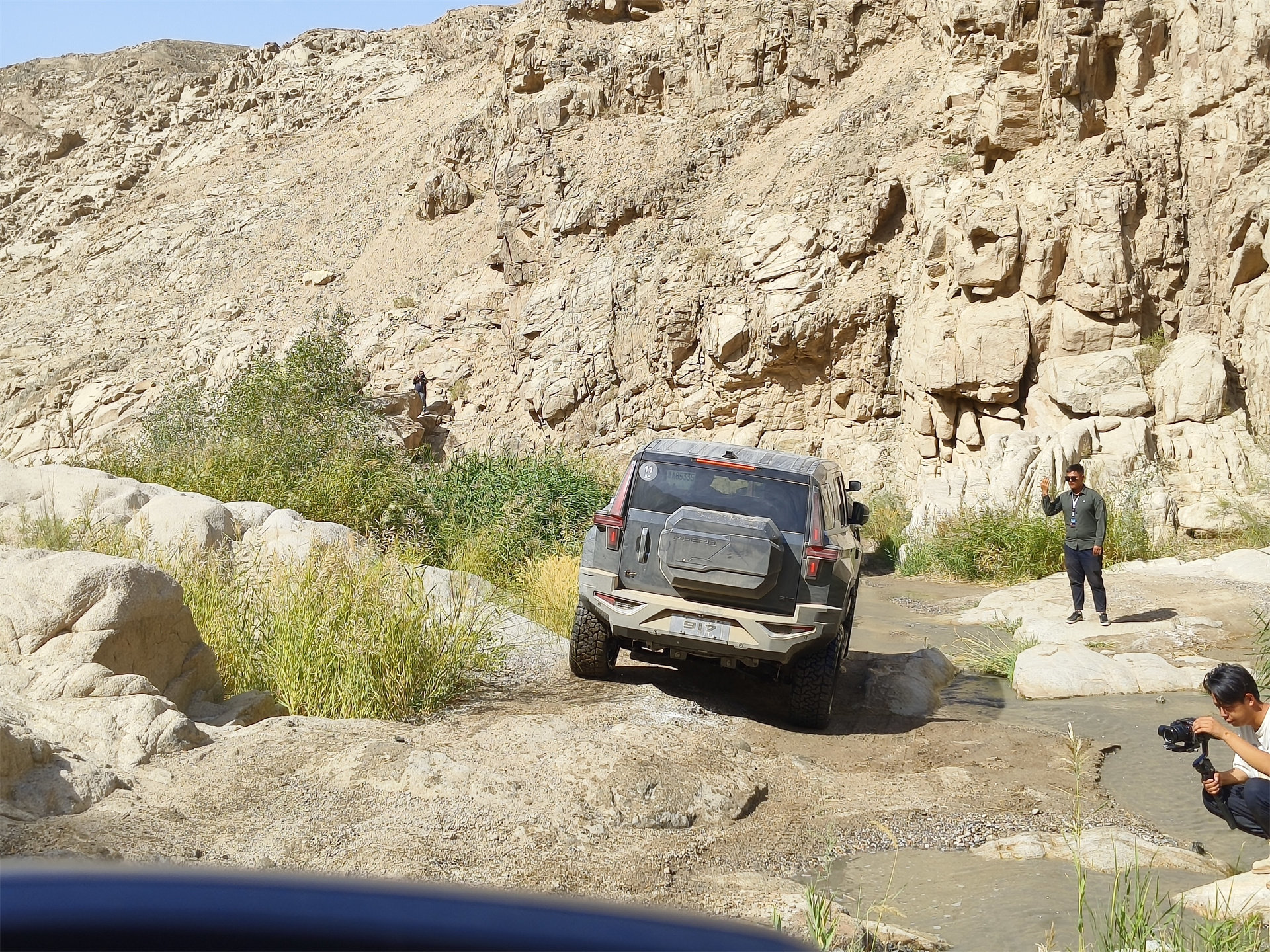 所以是的,猛士917在几乎所有越野工况下,都能做到如履平地一般的从容自在。你会切实地感觉得到,似乎根本没有什么自然环境能难得住这台车。甚至于在我们后来的越野穿越中,我们一致认为,越野2这个悬挂高度根本没有必要,除了上午的冲沙山和爬石头外,压根就没有能需要用到这个高度的场景,因此包括我在内的很多媒体,都不约而同地,把悬挂高度降回了更低的“越野3”(公路模式默认高度)。