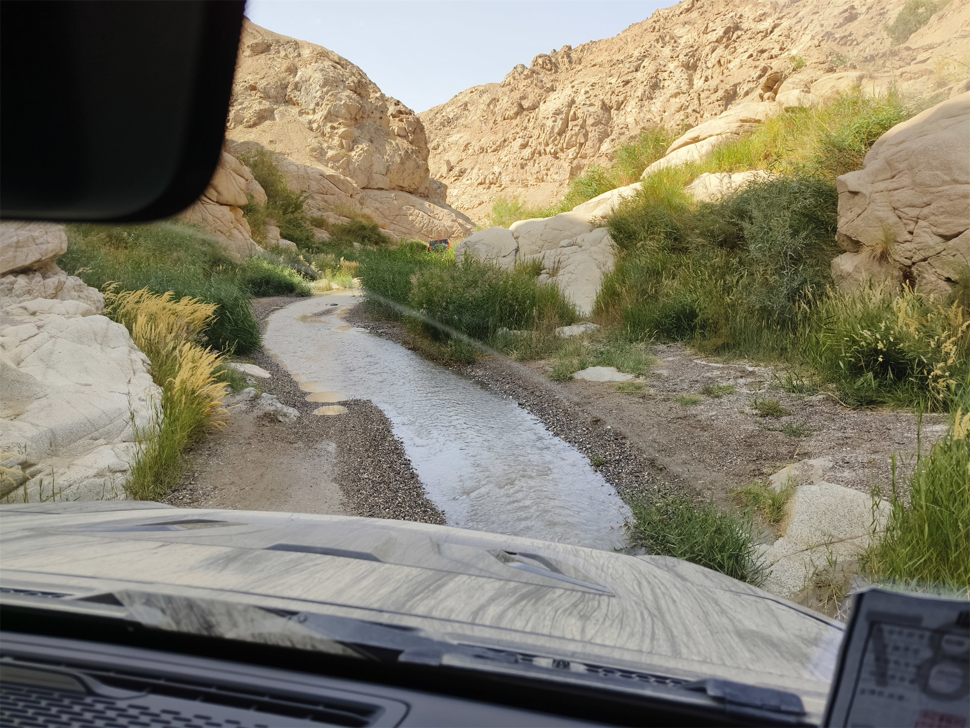 你甚至不会感觉到你刚翻过去的这座沙山有多高,有多险峻。而在过其他越野路况的时候也是一样的,坐在车里,听着丹拿音响传出来的美妙音乐,你压根不会感觉得到前面的路况有多危险,但只要你下车,用脚真正去走一遍你刚才轻松经过的路,你才会知道这些路到底有多难对付。
