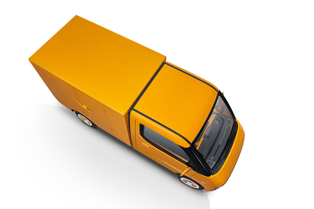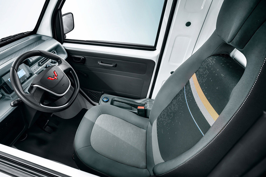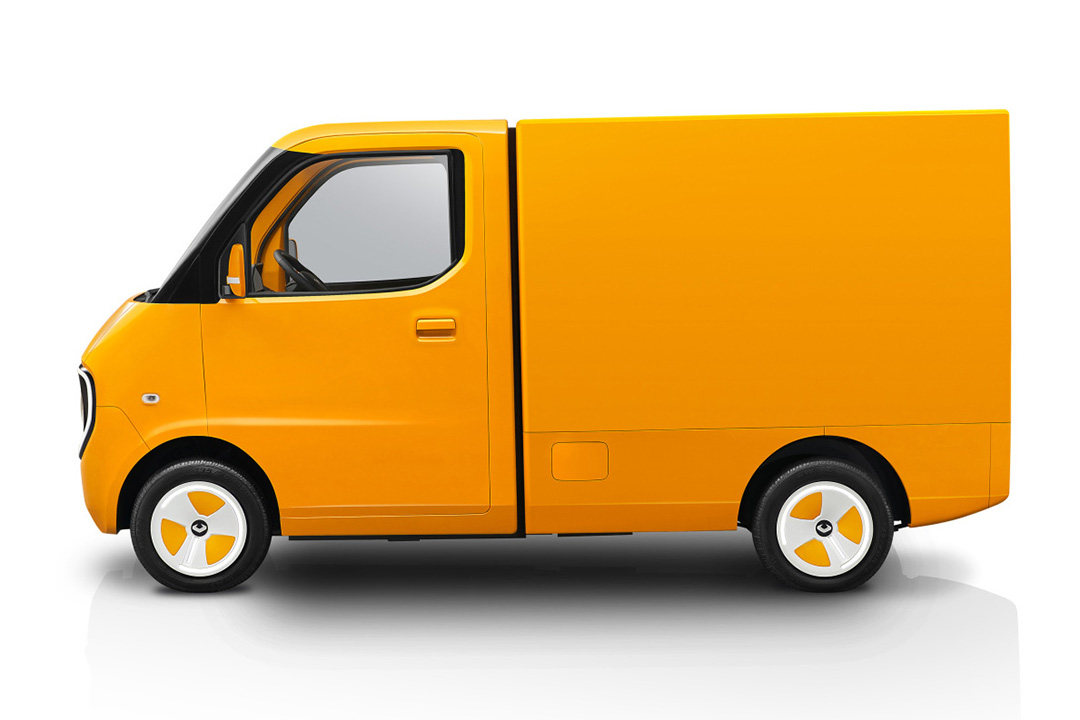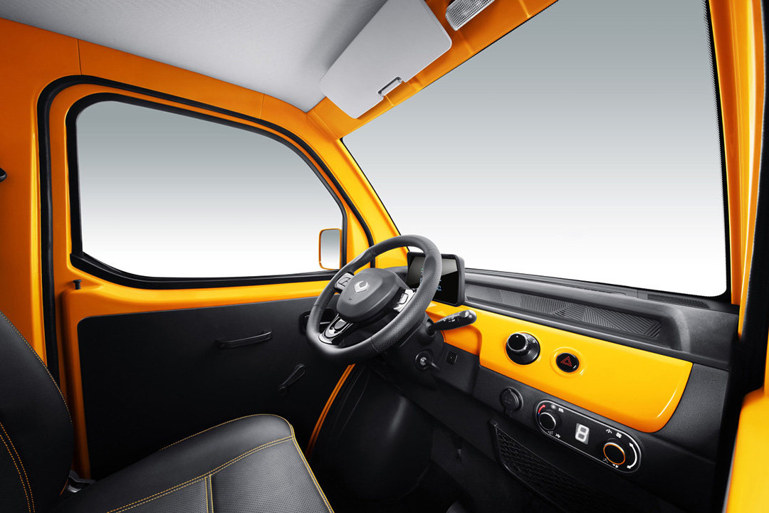 受到尺寸限制,这款超微型货车只能坐下一名驾驶员,而在驾驶舱身后便是一个非常方正的独立货厢,用于装载物流包裹等货物。