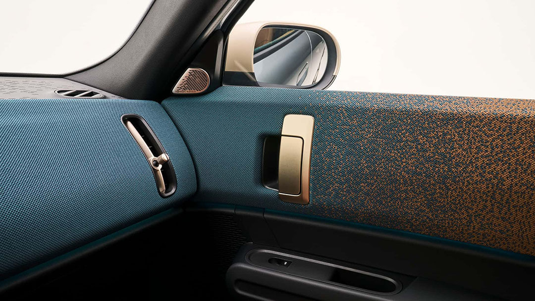 尤其是中控台与车门饰板之间的颗粒渐变效果,让中控台的青色与座椅的橙色实现自然过渡,看起来更是十分前卫大胆。