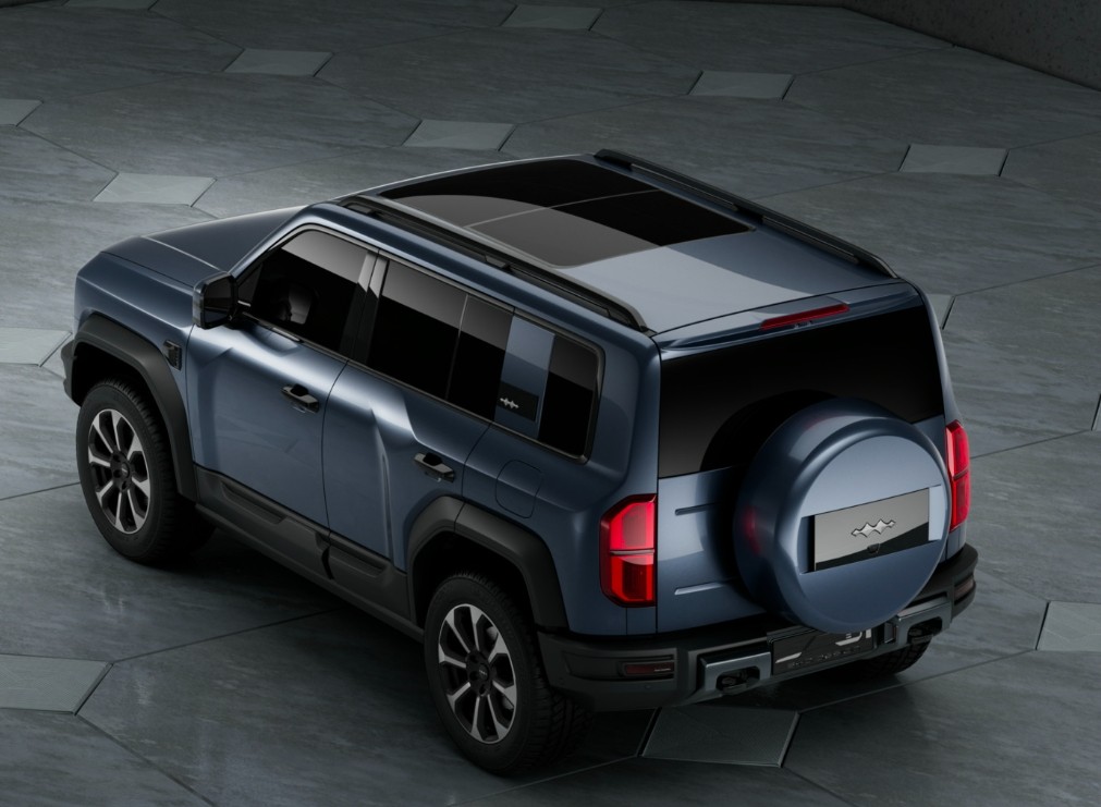 在尾部,豹5采用了从右往左开的侧开门,云辇版本采用全包式的外挂备胎,而普通版本则是半包式。豹5还配备了电吸尾门以及可选的伸缩式脚踏板和拖车钩(豹5拥有可选装的2.5t的拖车资质),并且带有拖车电源接口。