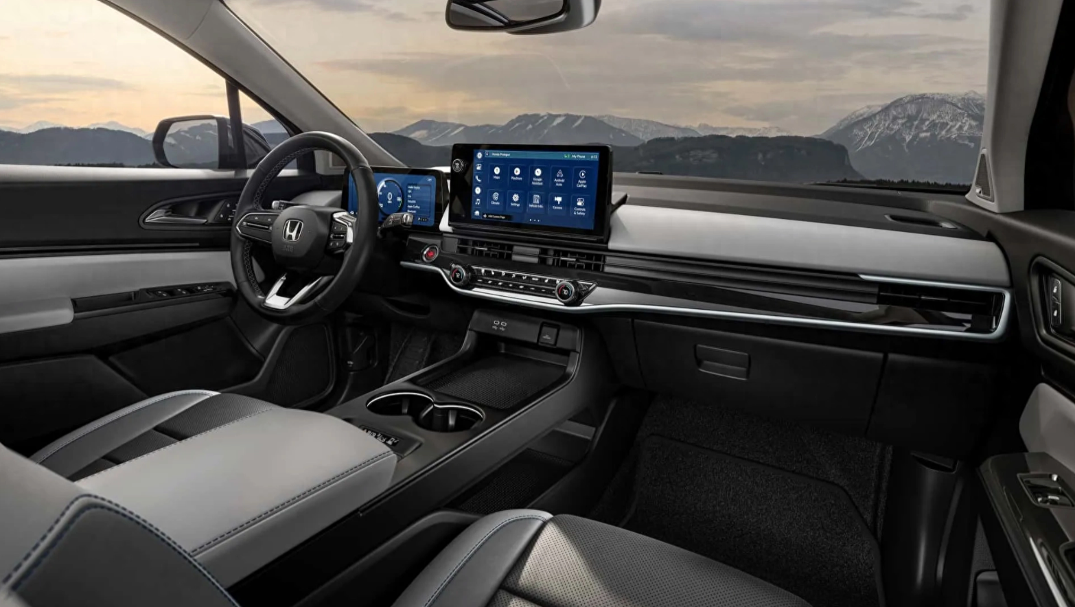 进入内饰,本田Prologue同样采用很油车的感觉,新车除了配备11英寸数字仪表显示屏,并提供11.3英寸悬浮式中控触摸屏,双联屏下方保留了传统样式的空调出风口,以及大部分物理按键,但其换上了怀挡设计,整车似乎只有这一设计稍微趋于电气化车型的风格。