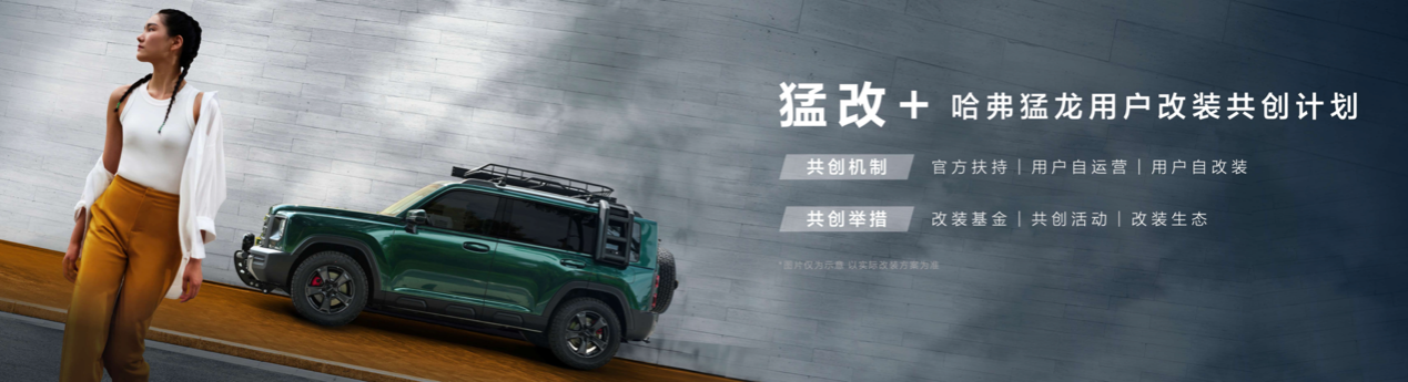 在本届东莞车展现场,哈弗品牌还发布了「猛改+」用户改装共创计划,成立改装管委会、开设专属改装基金、发起共创活动、丰富改装生态四大举措,从而打造特色改装文化圈层,助力用户更好地玩转改装。