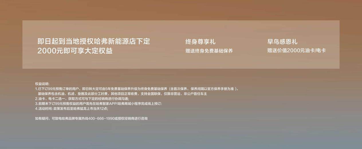 即日起到当地授权哈弗新能源店下定2000元即可享大定权益: