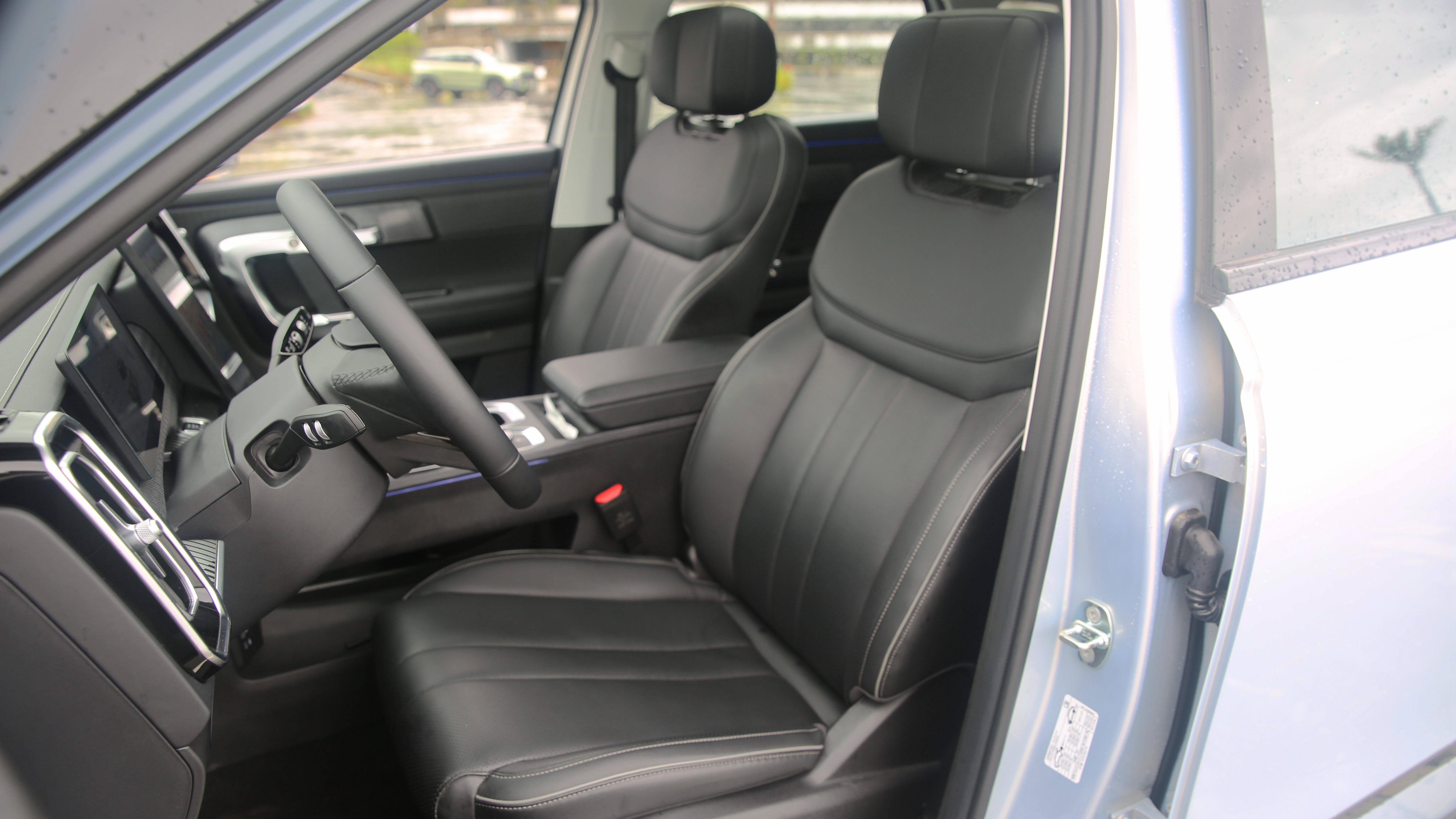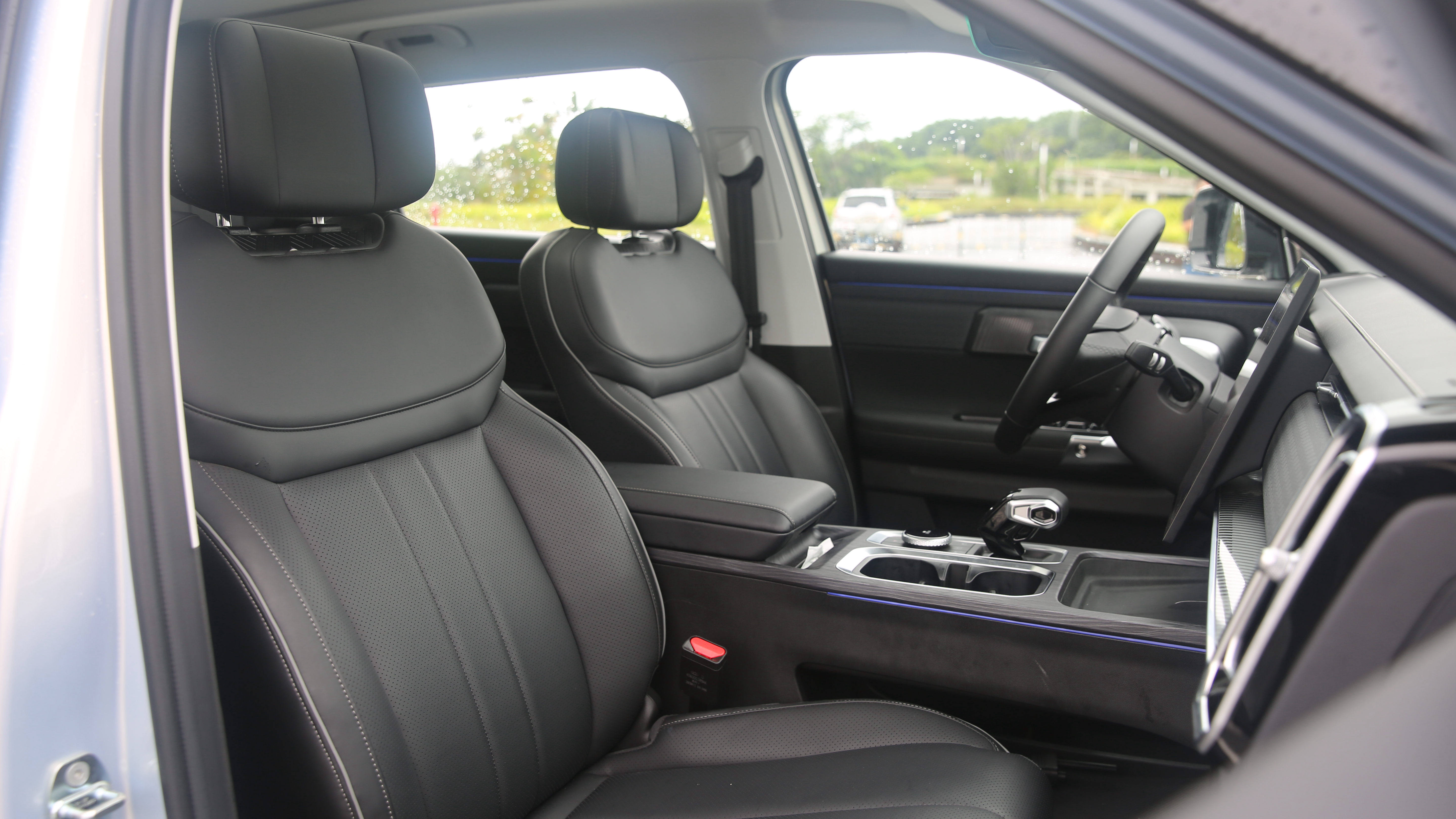 从横向角度来看,探索06主副驾驶位的坐垫、靠背以及头枕的侧翼设计能够为乘员的臀部、腰部以及头部提供充足的侧向支撑。说实话,桌垫和靠背的侧翼设计早已经是见怪不怪了,但探索06类似于头等舱座椅的头枕侧翼设计在同价位车型当中却是极为罕见的。