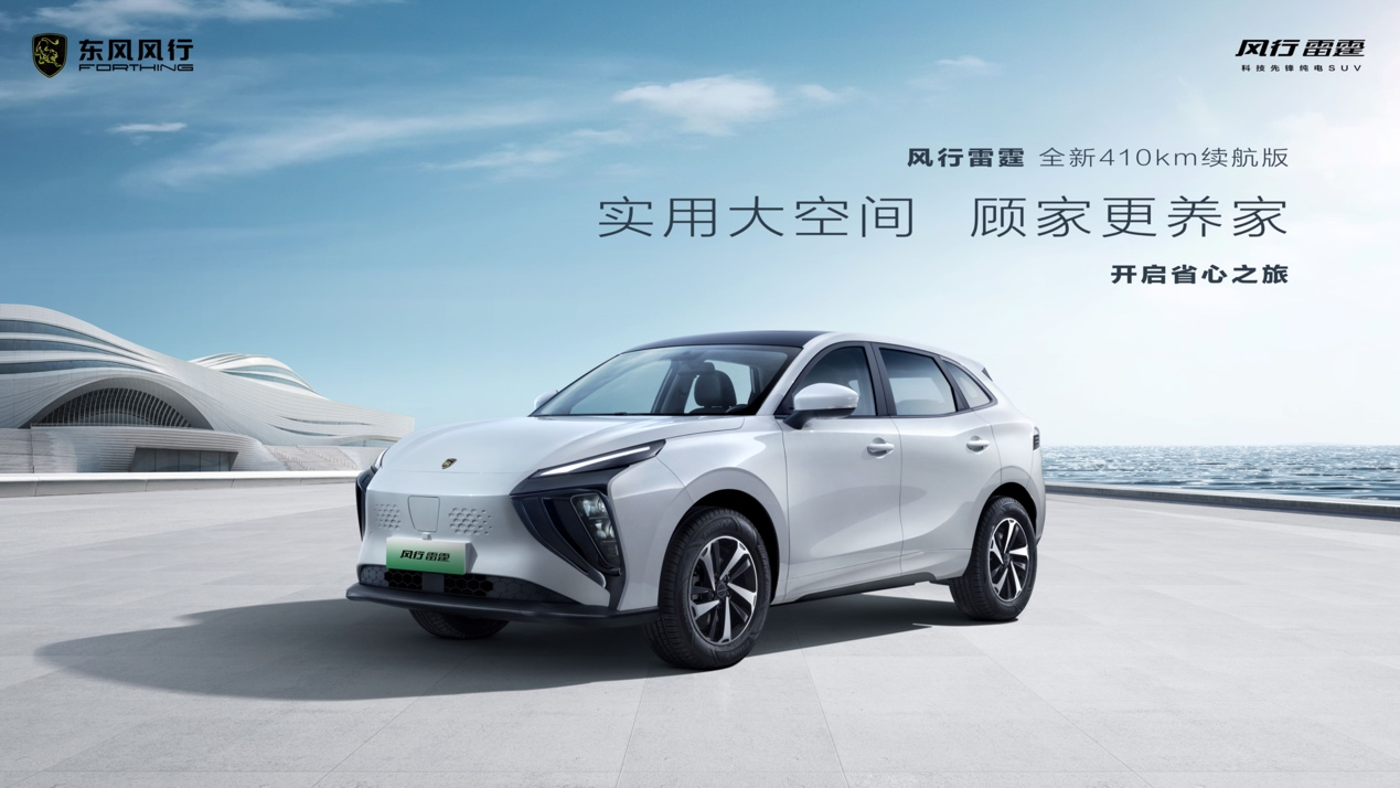 11月7日,风行雷霆410续航版正式上市,官方指导价为11.99万元起,带来6年或60万公里超长三电质保,为用户提供了强大的产品信心。风行雷霆系列自上市以来,凭借潮酷颜值、精湛内饰、舒适智慧空间、卓越的三电技术、超长续航等超A体验,圈粉一众潮酷用户。为了进一步满足追求质价比家用车的用户需求,此次风行雷霆系列带来一款“顾家更养家”的风行雷霆410续航版车型,为用户提供了一个超值的入门级纯电SUV新选择。新车在颜值、三电系统及智能驾乘体验上进行精心优化,而价格却进一步下探,质价比更上一层楼,真正做到“加量不加价”,不断激发用户追求实用质价比的购车热情,为用户打造更省心的纯电生活模式!