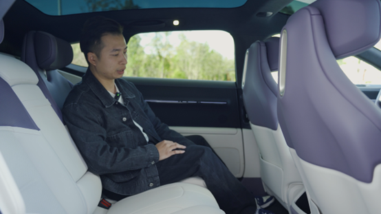 阿维塔12虽然用了溜背的设计风格,但其实车内后排头部空间并不局促,以1.7米的身高为例,大家可以参考下后排的空间体验。