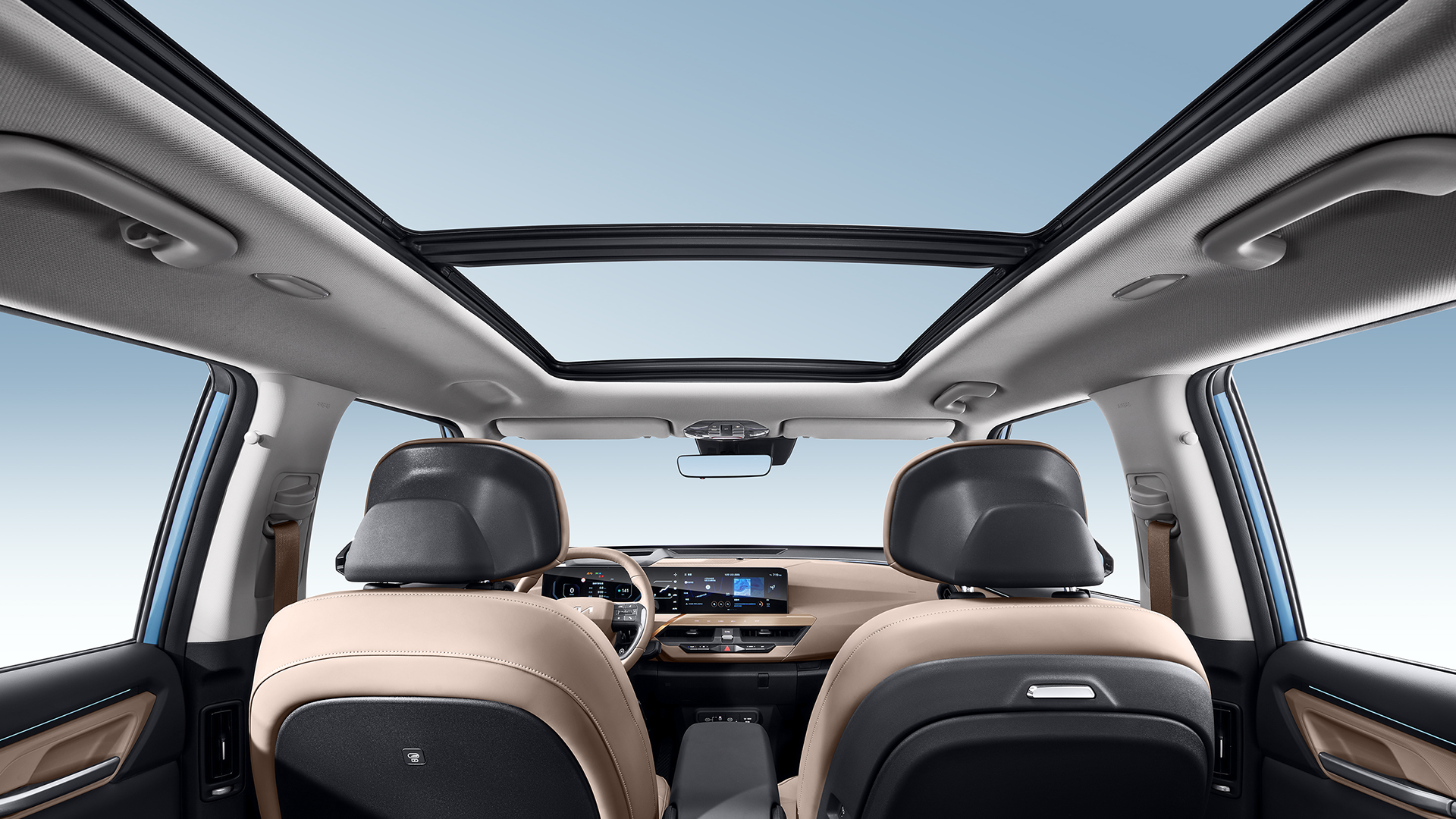 电动尾门和对外放电都是中配有而低配没有的,同时,中配有全景天窗(可开启式)而低配没有天窗,智能车机倒是全系都有,另外,中配还有车载的220V电源而低配没有。中配的座椅为皮质和织物混搭材质,而低配为全织物材质。中配有前排座椅加热(但没有通风),低配没有。除此之外,中配的内饰多了一种黑色和灰色的拼搭色,低配只有一种全黑内饰。