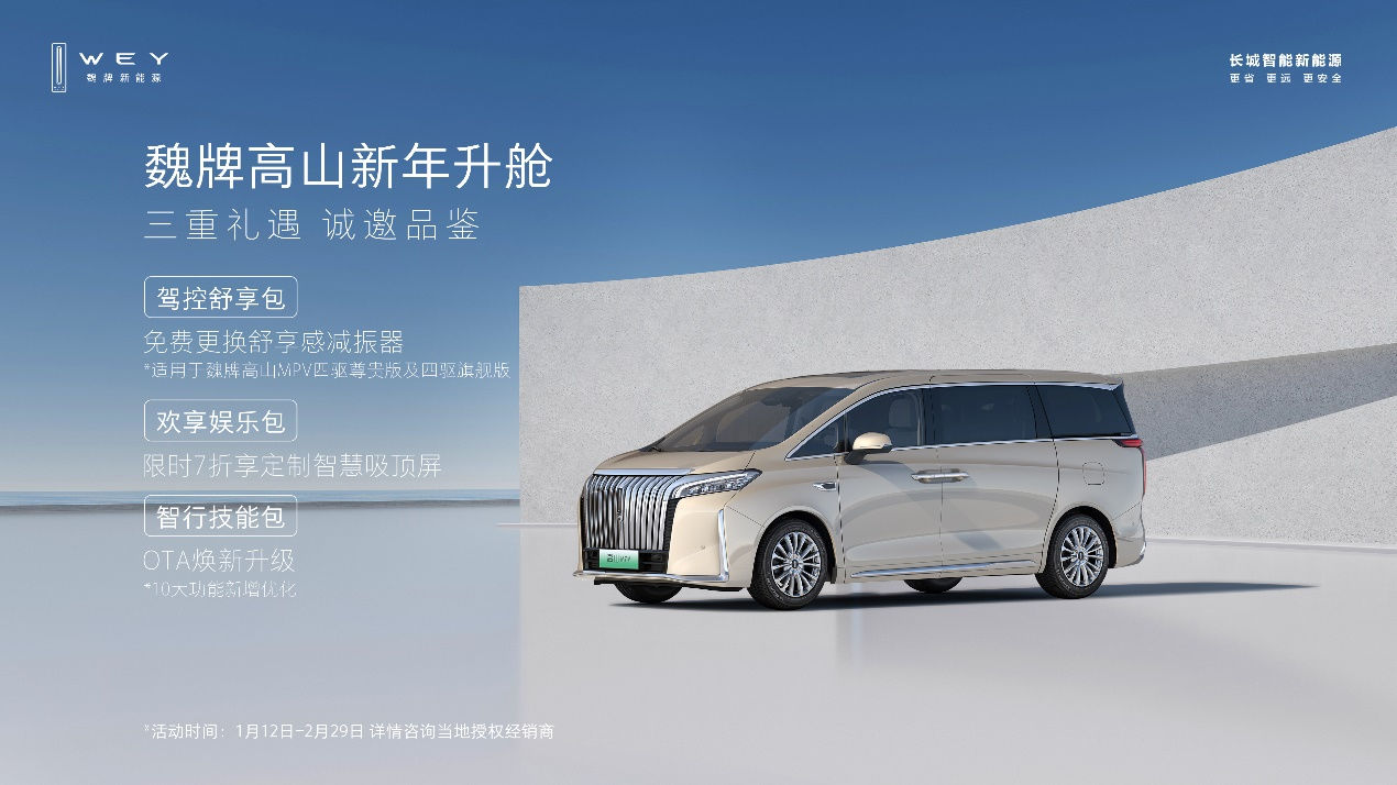 面对用户日益升级的高品质出行需求,魏牌始终坚持“以用户为中心”,以领先的技术和产品回馈用户,让科技赋能生活。新年伊始,魏牌高山MPV正式发布“新年升舱”计划,通过驾控舒享包、欢享娱乐包、智行技能包三重尊享礼遇,为用户提供更美好的出行体验。