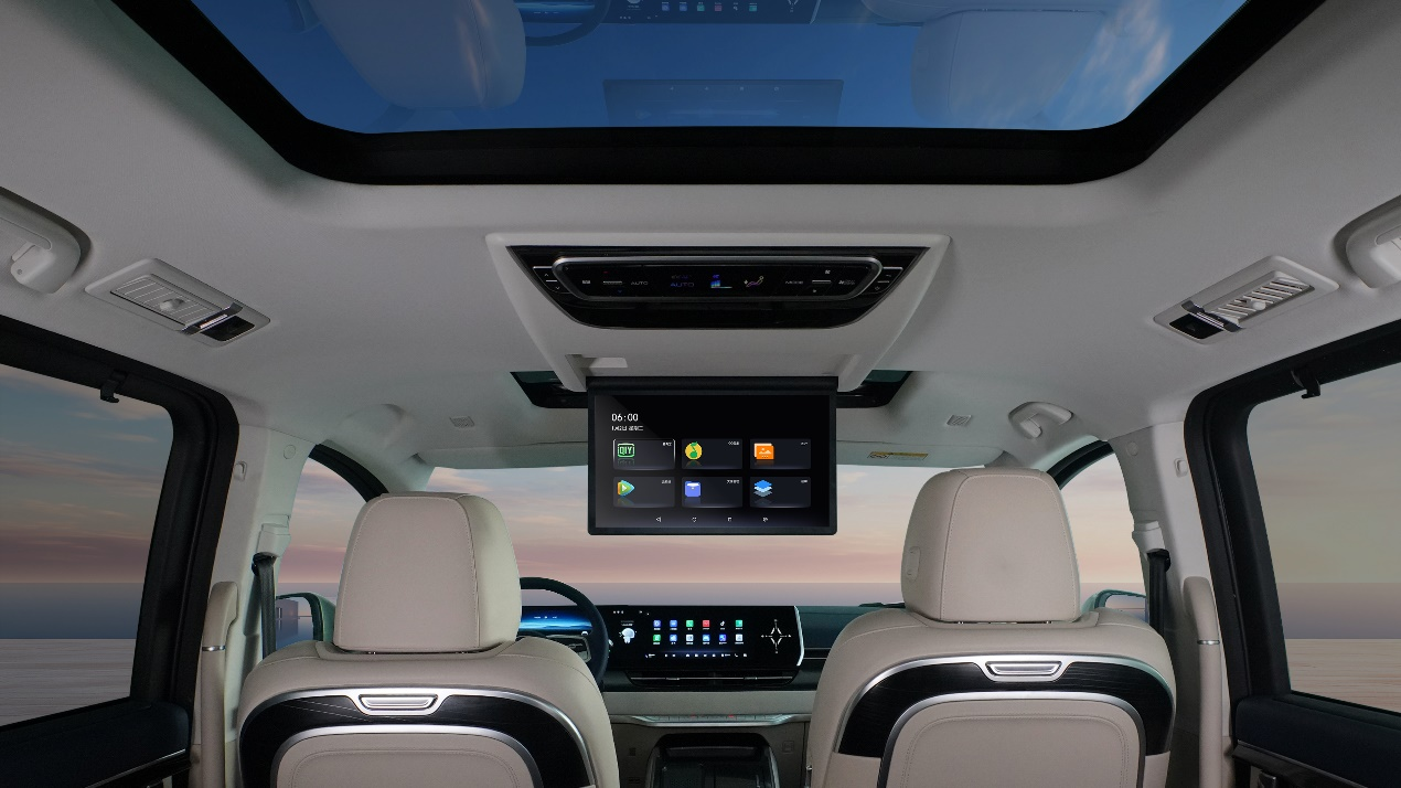 魏牌高山为了给用户提供更优质的娱乐体验,此次“新年升舱”计划中,用户可享限时7折定制智慧吸顶屏,将爱车升级为更娱乐的头等舱。