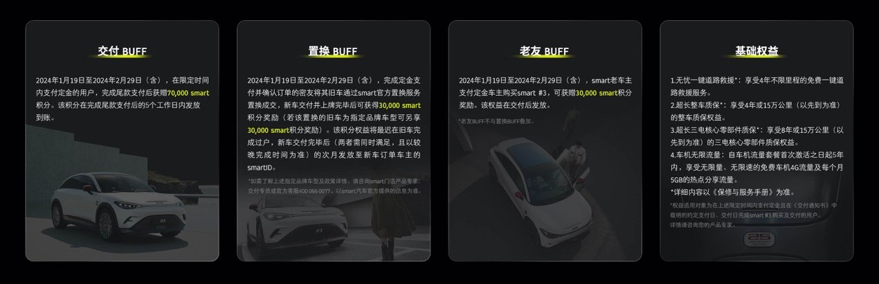 各位密友可通过smart汽车官方小程序、smart汽车官方APP抢鲜锁定自己的专属新奢席位。2月29日(含)之前支付定金的密友,更可享包括交付BUFF、置换BUFF、老友BUFF在内的诸多超值礼遇。