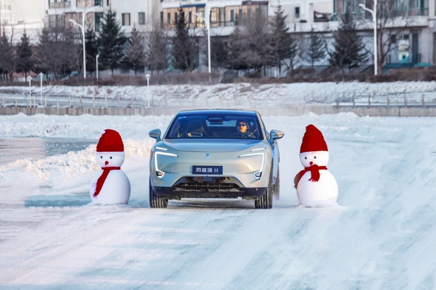 雪地行车,加速时轮胎极易打滑空转,制动时则可能带来甩尾现象,而“冰雪赛道智驾”则显得“难于上青天”。在道路形态极为特殊的全冰雪覆盖路面,阿维塔11的智驾功能不仅能够轻松开启,还能在附着系数极低的道路环境下有效辅助驾驶员,以“0接管”的状态征服1.8公里冰雪拉力短道,并在230秒的限定时间内从容通过11个高难度弯,首次以智驾征服冰雪汽车拉力专业赛道。智驾冰上障碍赛中,阿维塔11以敏捷的身姿优雅避让赛道内多组障碍物,并以50km/h 智驾通过仅为2.5米的冰面限宽门(阿维塔11车身宽度为1.97米),验证了智驾系统精细的规控能力。